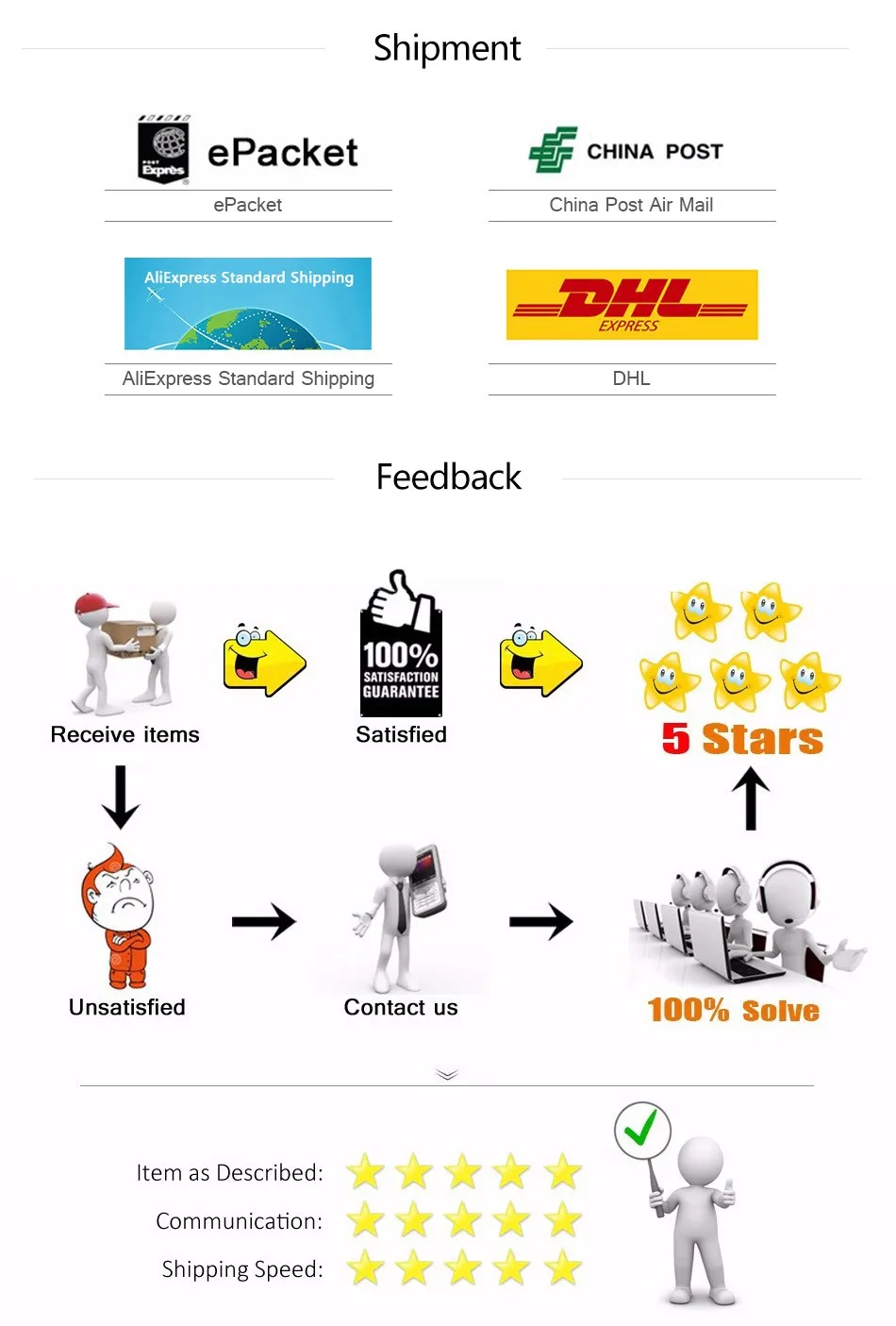 2.Items are shipped by AliExpress Standard Shipping, China Post Registered Air Mail, Epacket, Reach most of countries within 15 to 35 business days. Delivery time depends on destination and other factors, it may take up to 50 business days to few remote region.