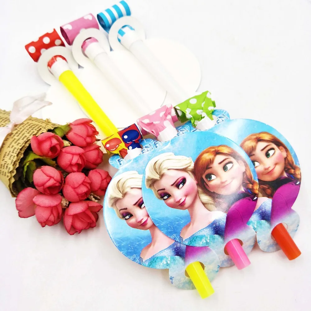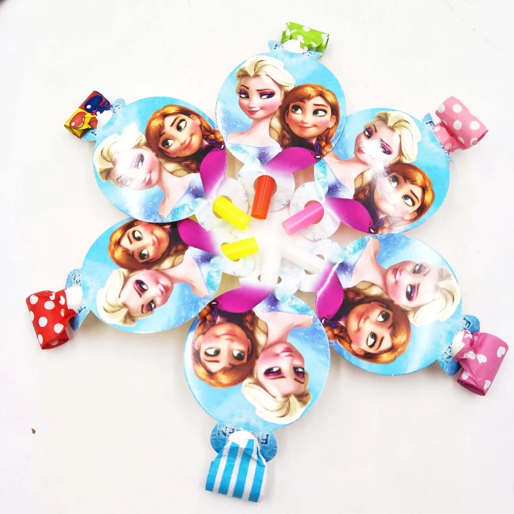 6pcs/bag DISNEY Frozen Anna And Elsas Girls Party Supplies Blowouts Kid Birthday Celebration Noise Gifts Cartoon Decoration Set