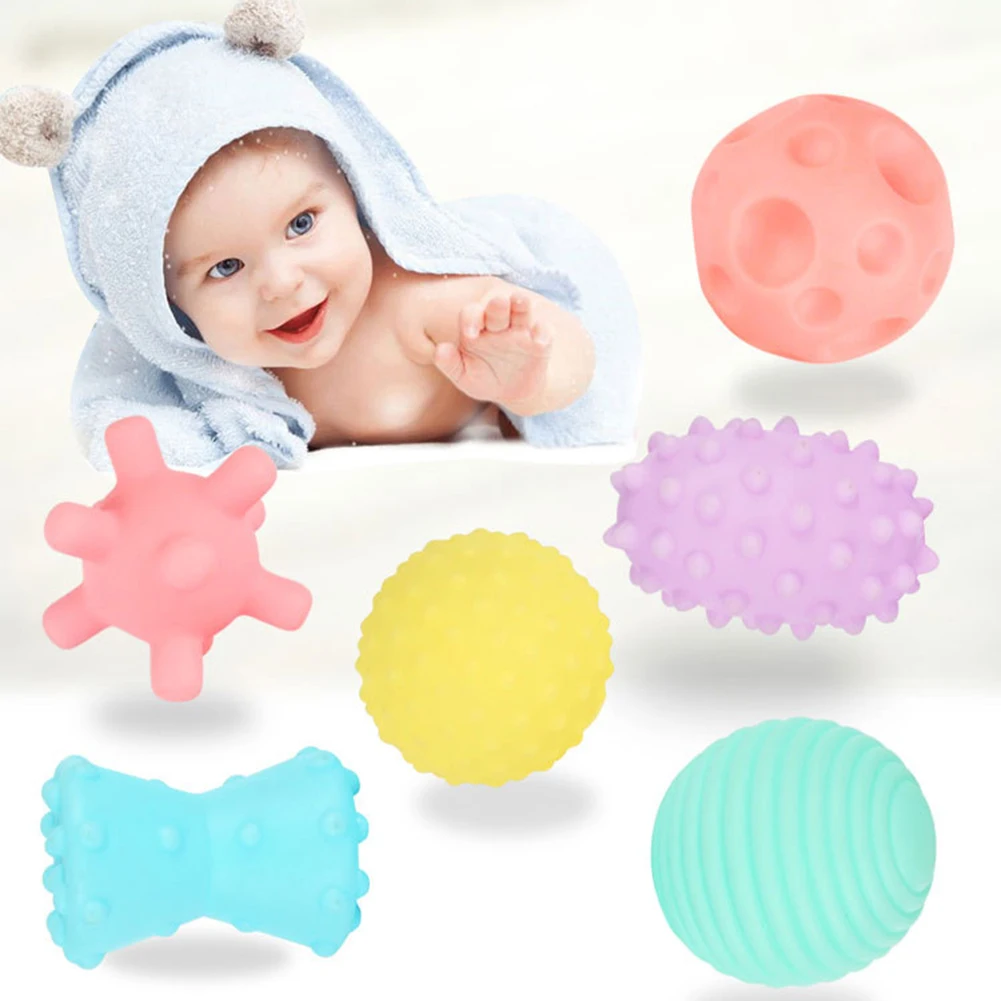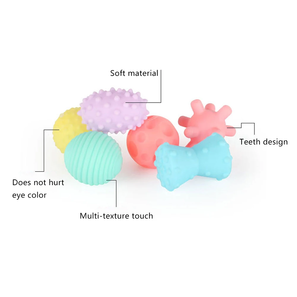 1 * 6PCS Hand Catching Massage Ball Multi-texture Teether Toy Bath Toy Set For Babies