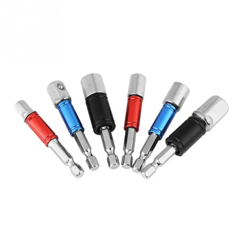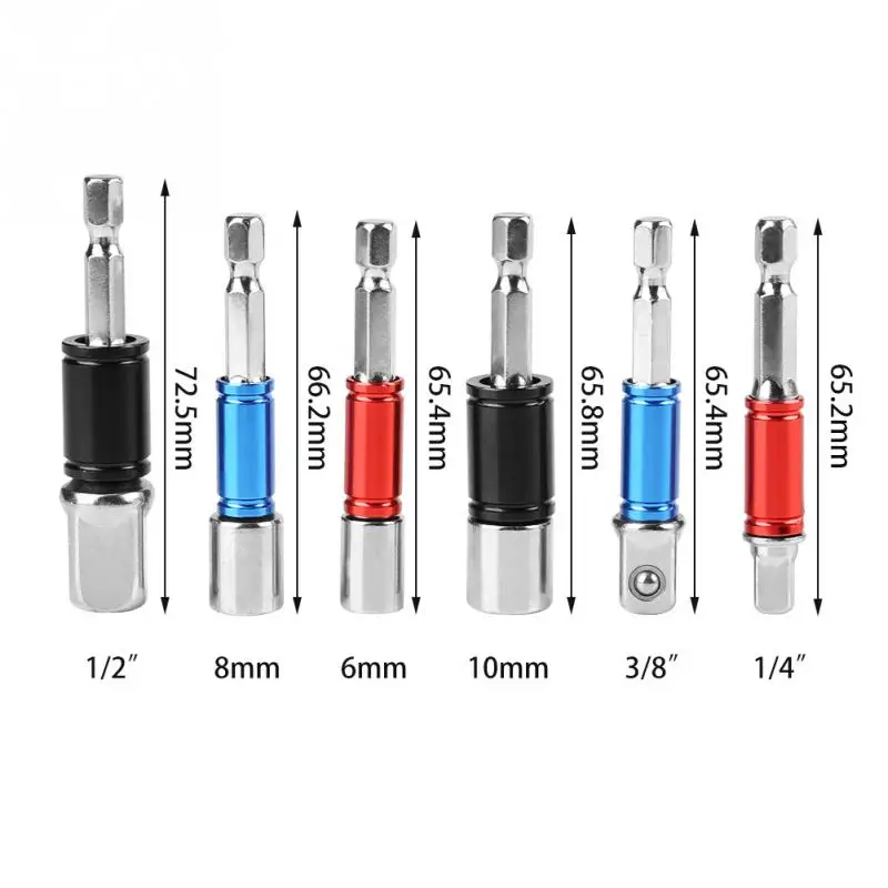6pcs/set 1/4″ Shank Hex Socket Sleeve Magnetic Nut Driver Set Power Tool+ Extension Bar Adapter