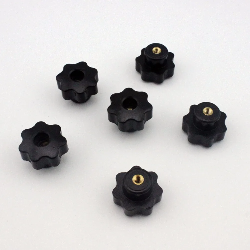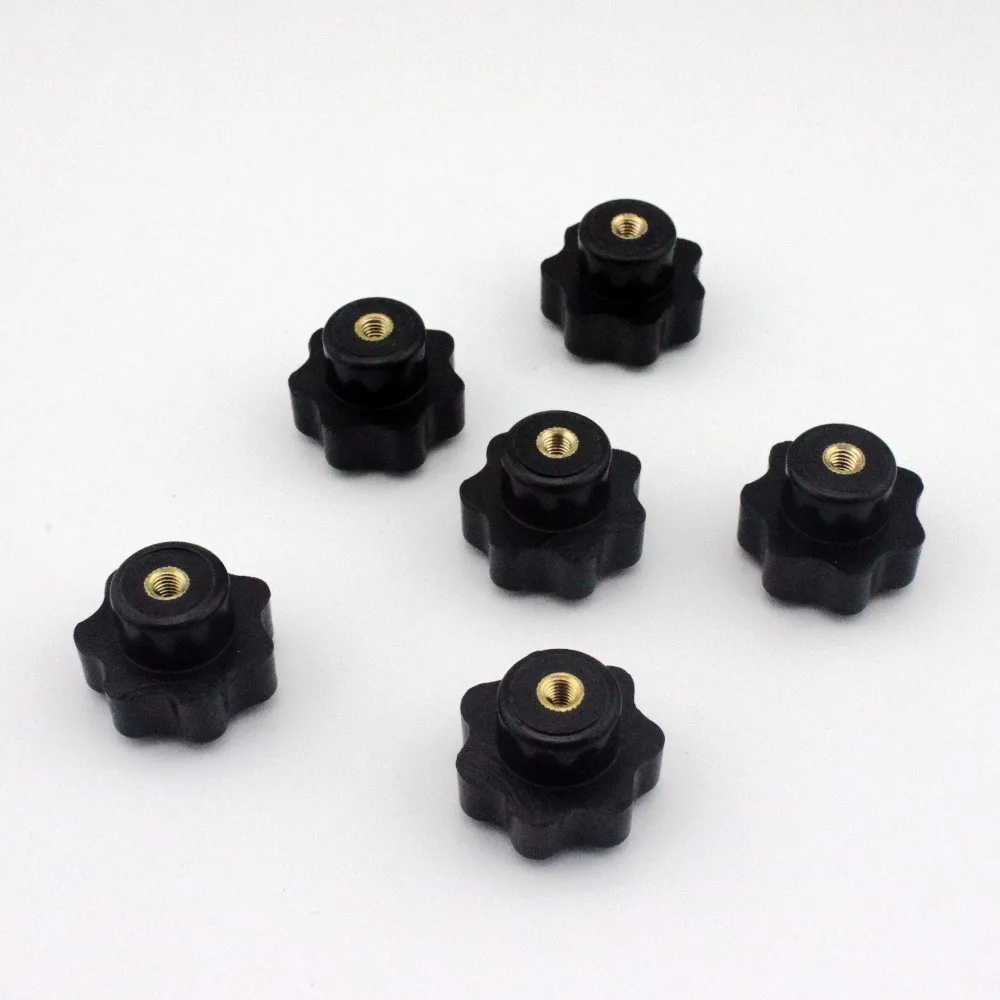 6pcs M5 Female Thread 30mm OD Star Shaped Head handle Nuts Knob Clamping Nuts Knob with through-hole