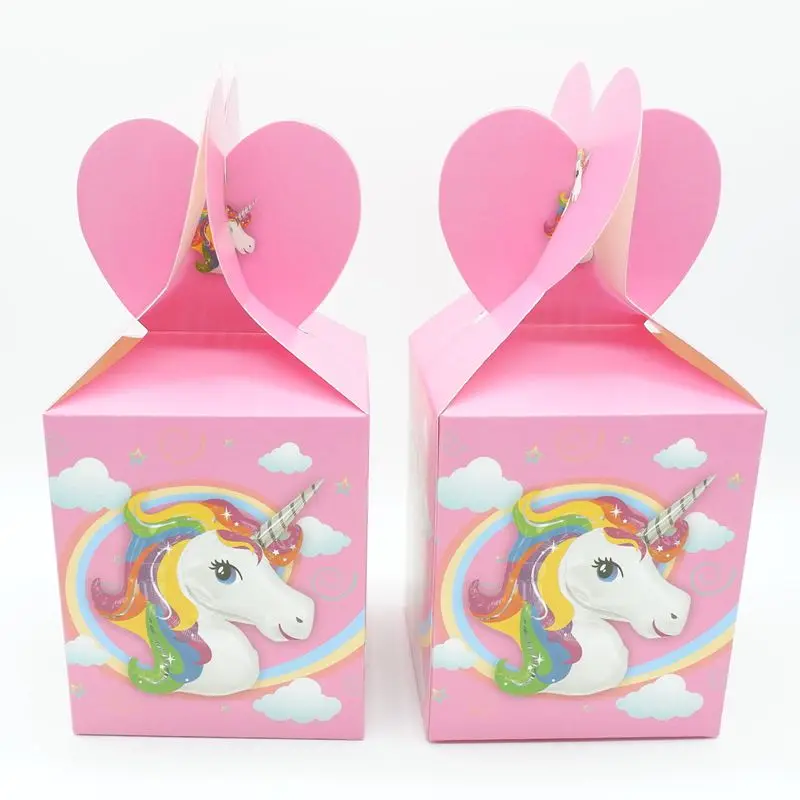 6pcs Rainbow unicorn Favor Box Candy Box Gift Box Cupcake Box Girl Kids Birthday Party Supplies Pink Decor Event Party Supplies