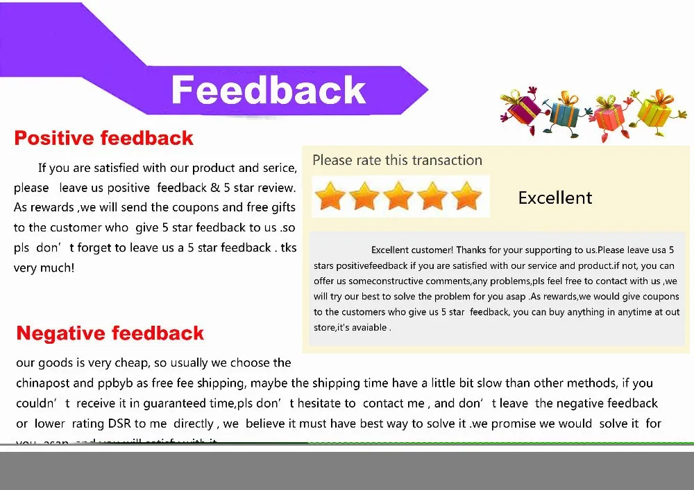 • If you did not receive the product within the guaranteed time( 45 days not including 2-5 day processing) you can request a refund or a reshipment.