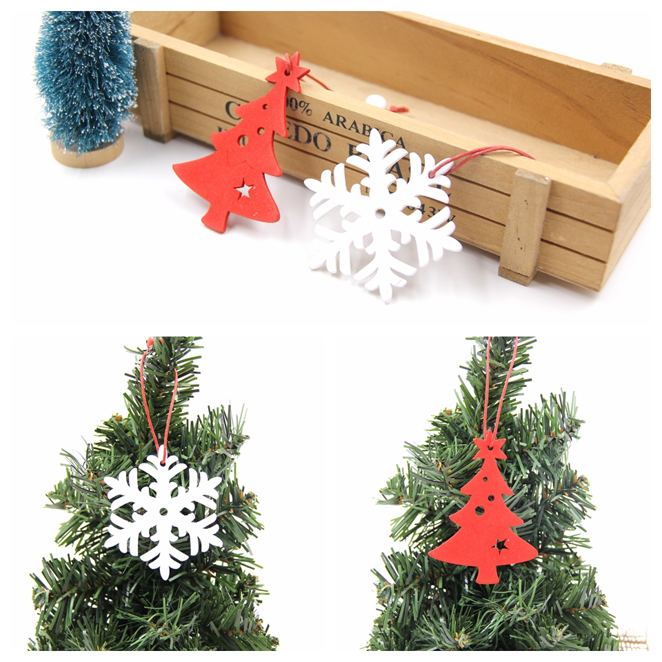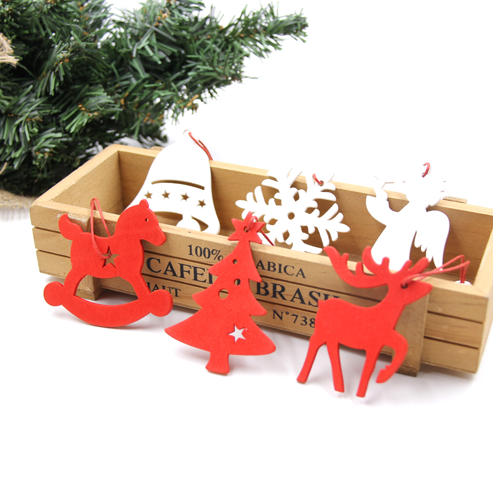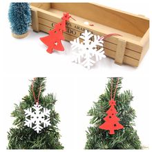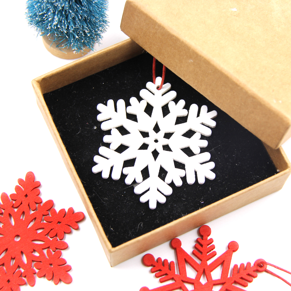 6PCS White&Red Snowflakes Christmas Wooden Pendants Ornaments DIY Craft For Xmas Tree Ornament Home Christmas Party Decorations