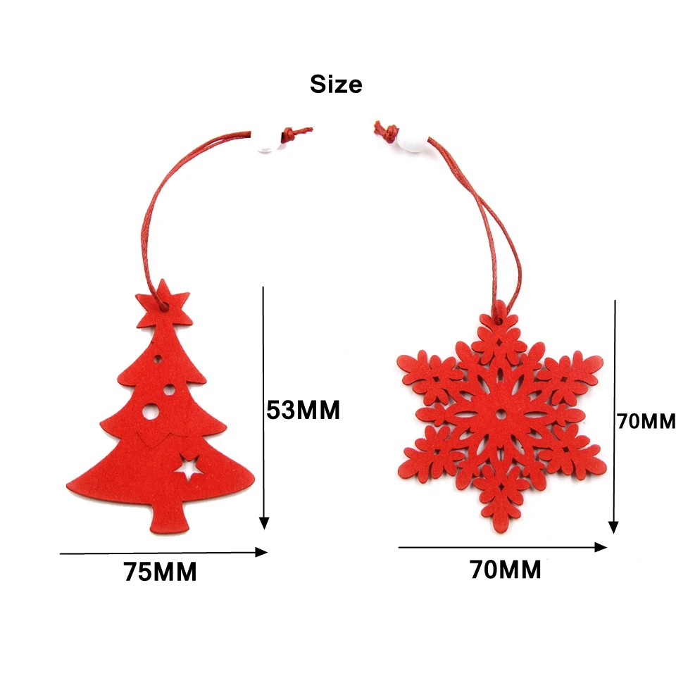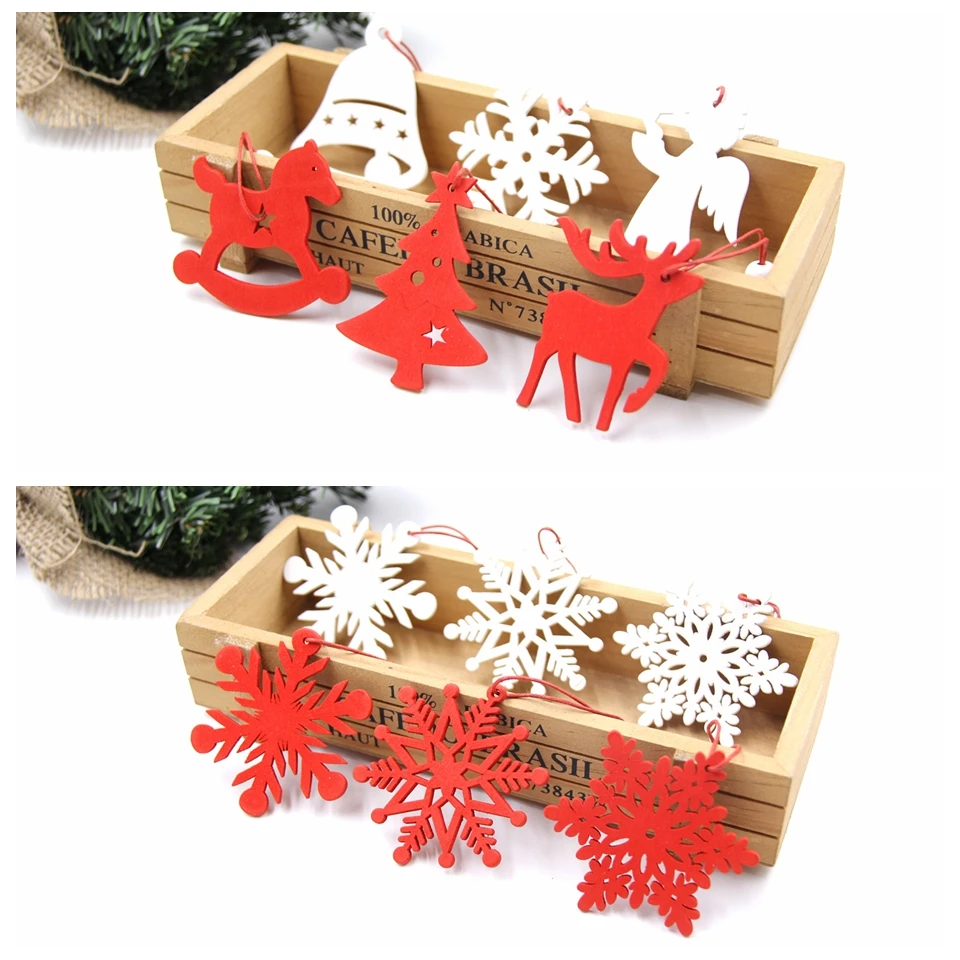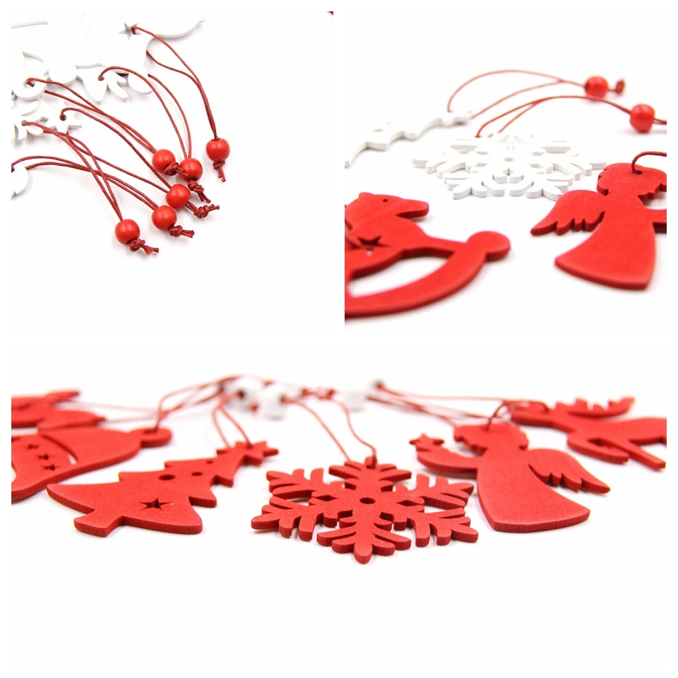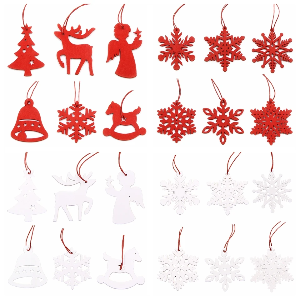 6PCS White&Red Snowflakes Christmas Wooden Pendants Ornaments DIY Craft For Xmas Tree Ornament Home Christmas Party Decorations