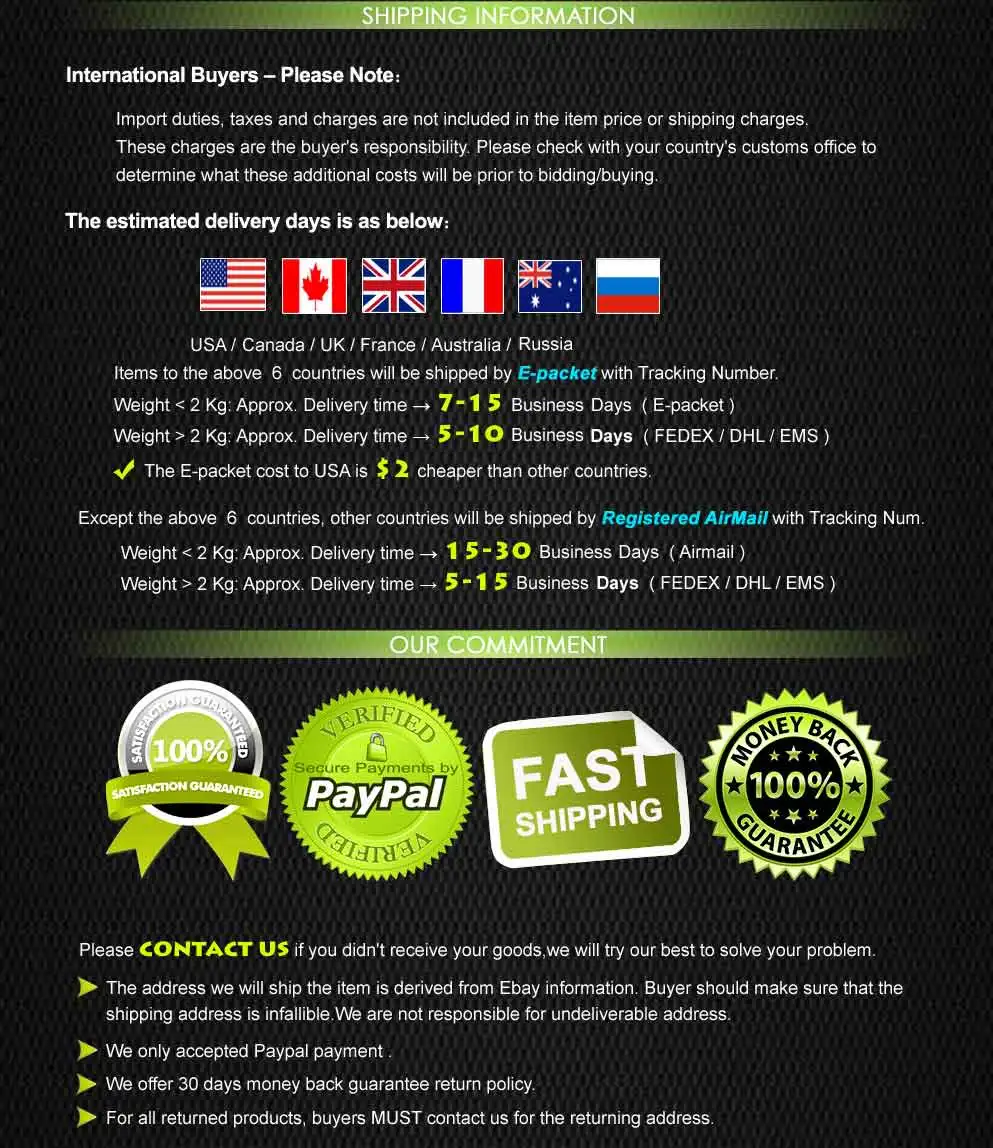 • If you did not receive the product within the guaranteed time( 45 days not including 2-5 day processing) you can request a refund or a reshipment.