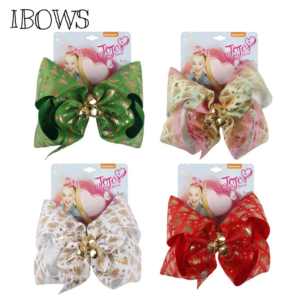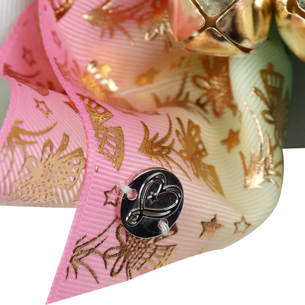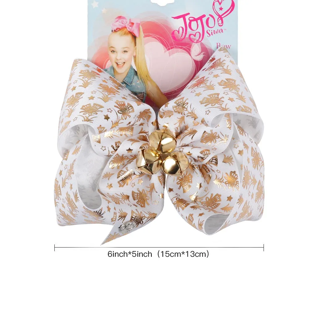 7 ” Christmas Bows Printed Gold Bells Christmas Large Hair Bows For Girls New Year Boutique Hair Accessories Decoration