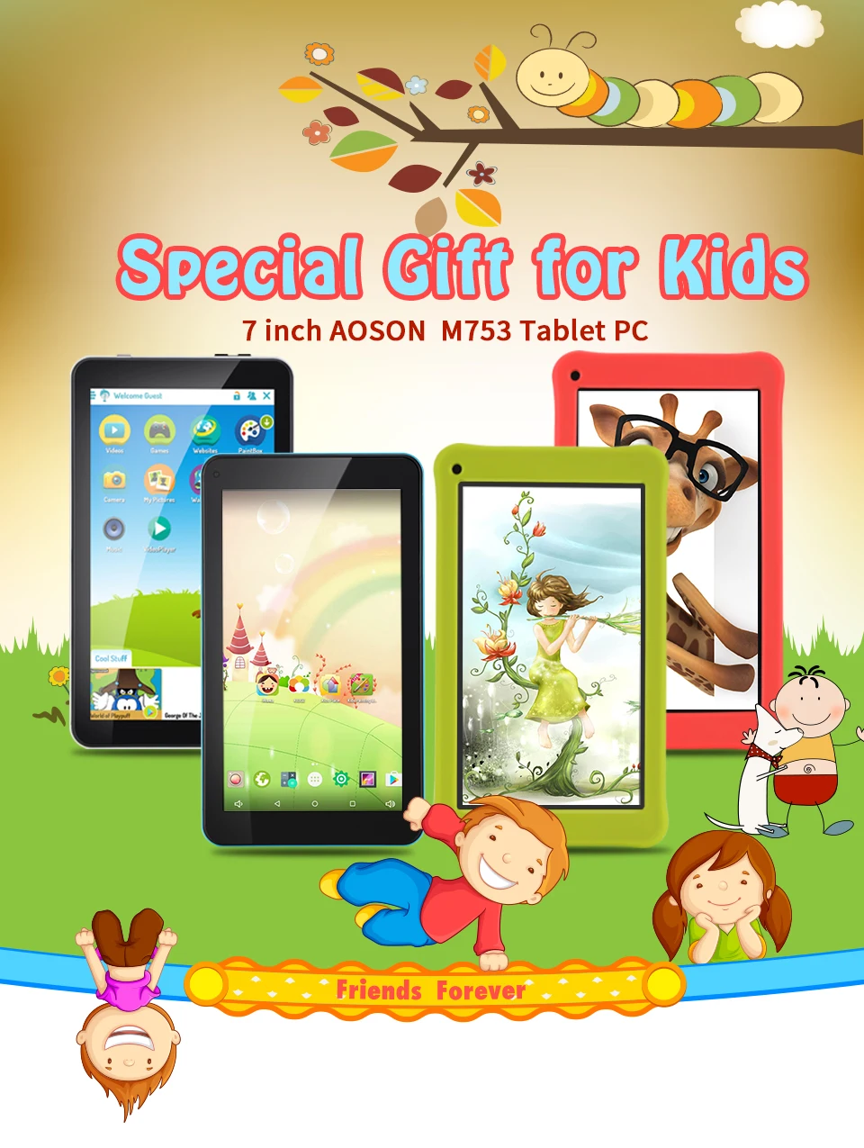 New 7 inch Android 7.1 Aoson M753 Tablet PC IPS 1024*600 Quad Core 16GB +1GB Dual Cameras Bluetooth WIFI FM OTG Multi Languages