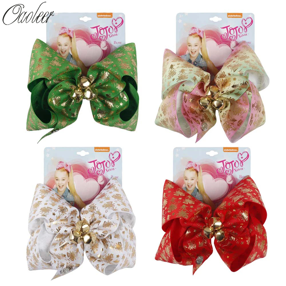 7 Inch Large Christmas Hair Bows Santa Twinkle Bells Dog Bows Happy New Year Hairgrips Girls Christmas Party Hair Accessories