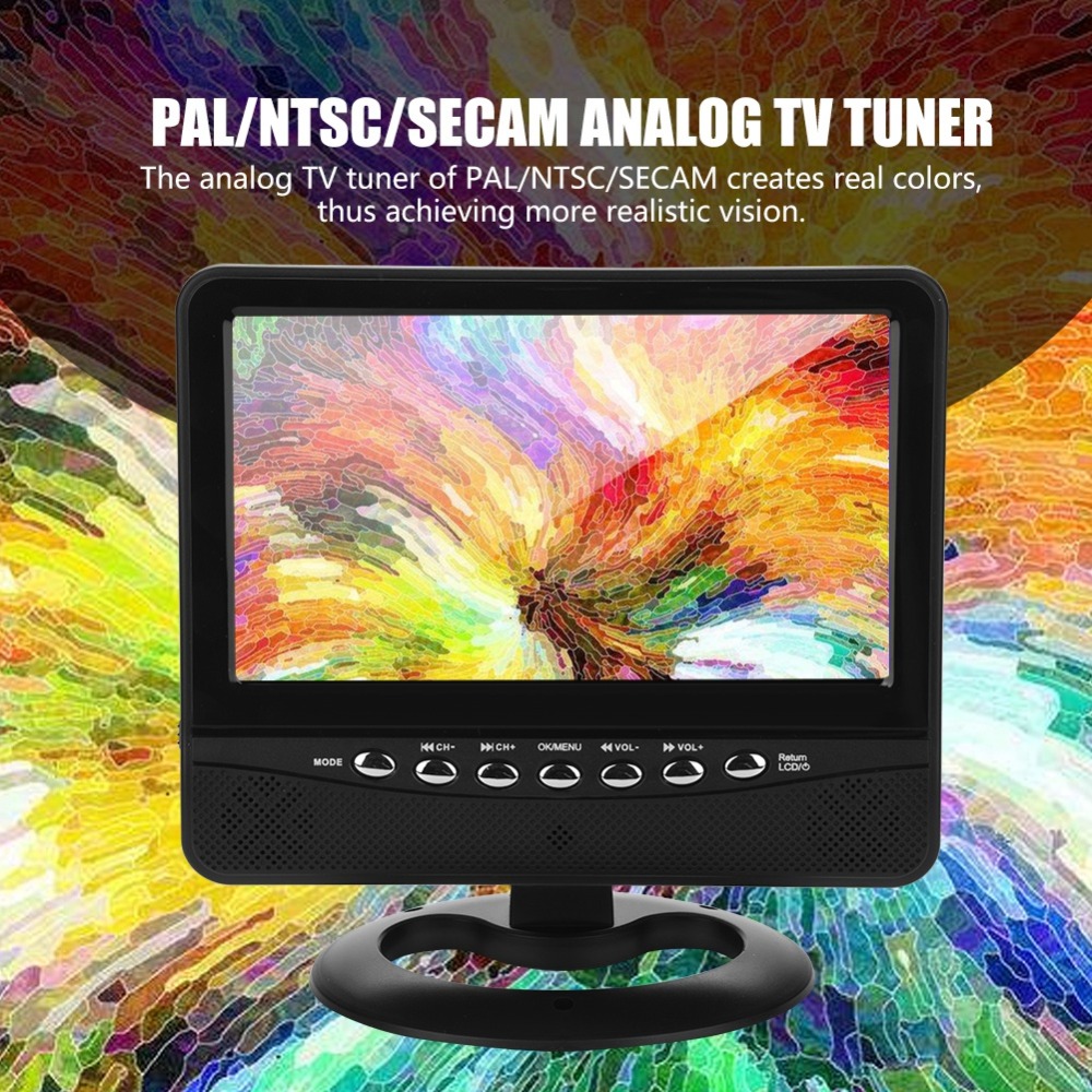 7 Inch TFT LCD Portable Car Analog Televisions PAL/NTSC/SECAM Analog TV Tuner Music FM Radio SD MMC Card USB Support US Plug