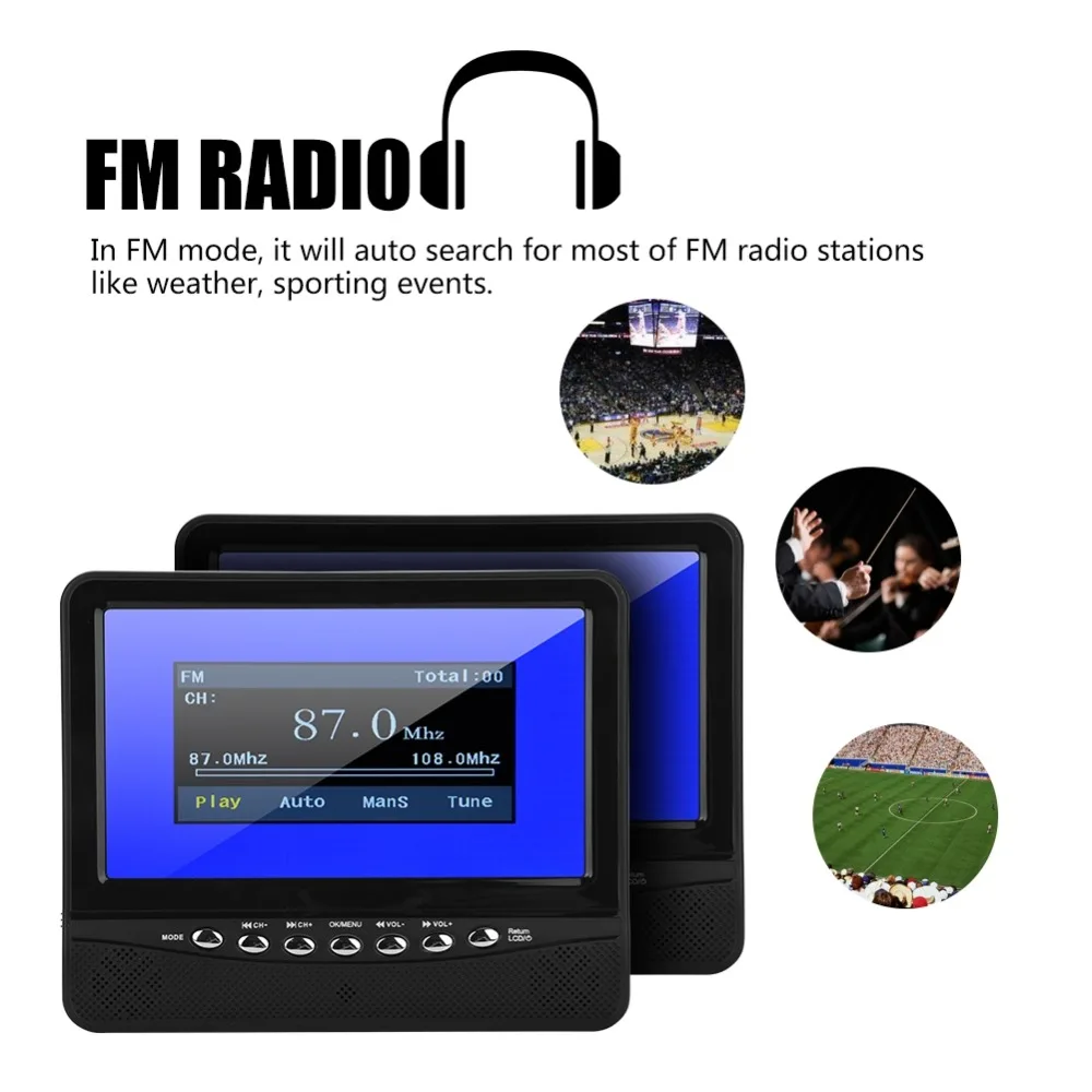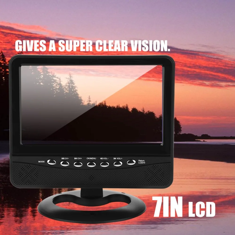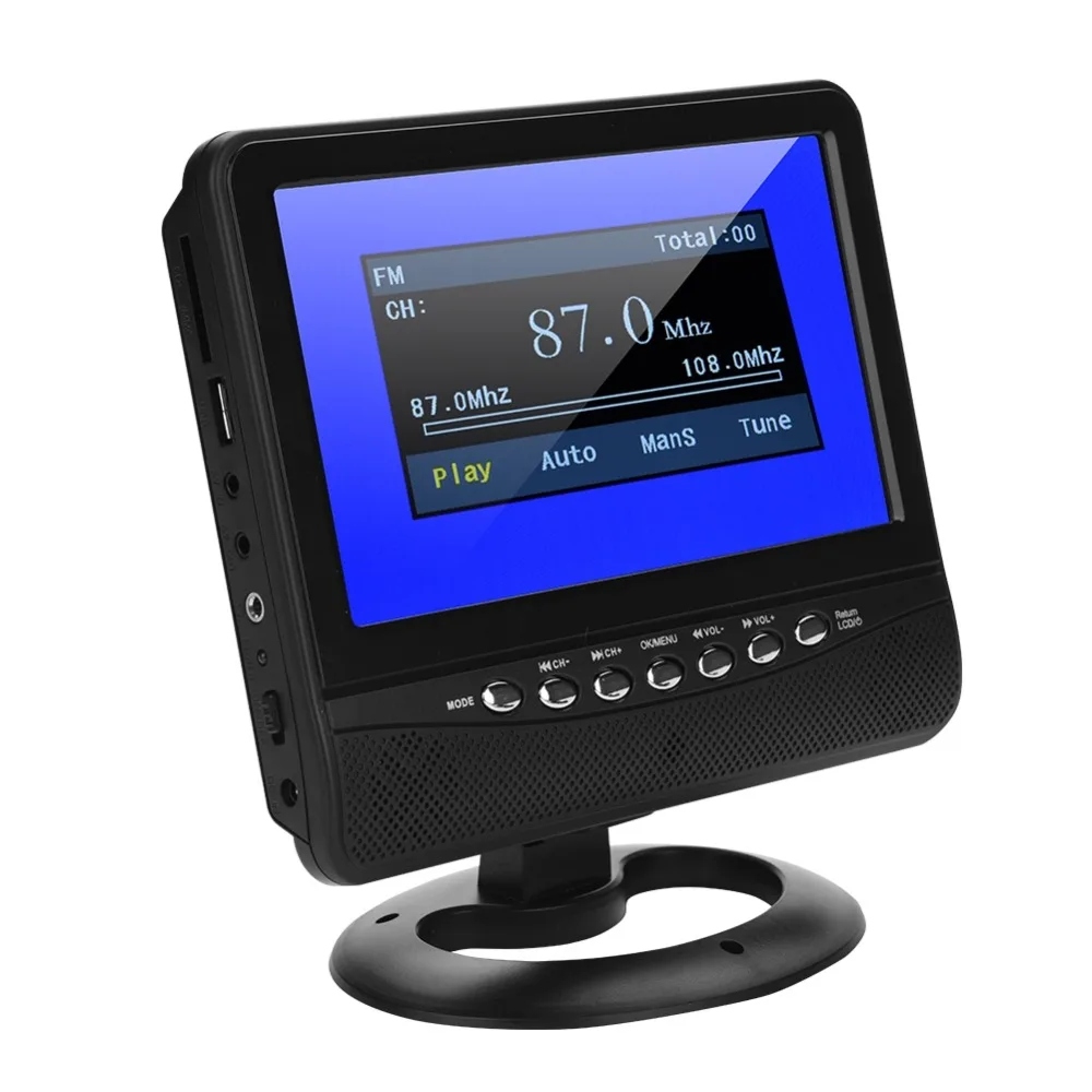 7 Inch TFT LCD Portable Car Analog Televisions PAL/NTSC/SECAM Analog TV Tuner Music FM Radio SD MMC Card USB Support US Plug