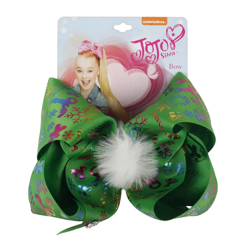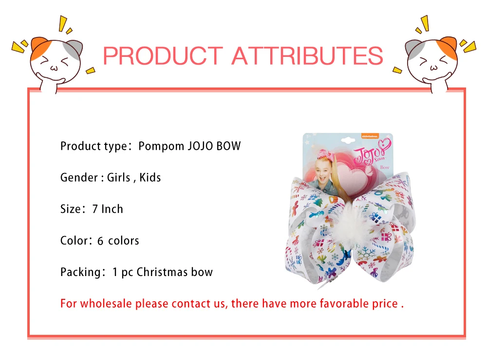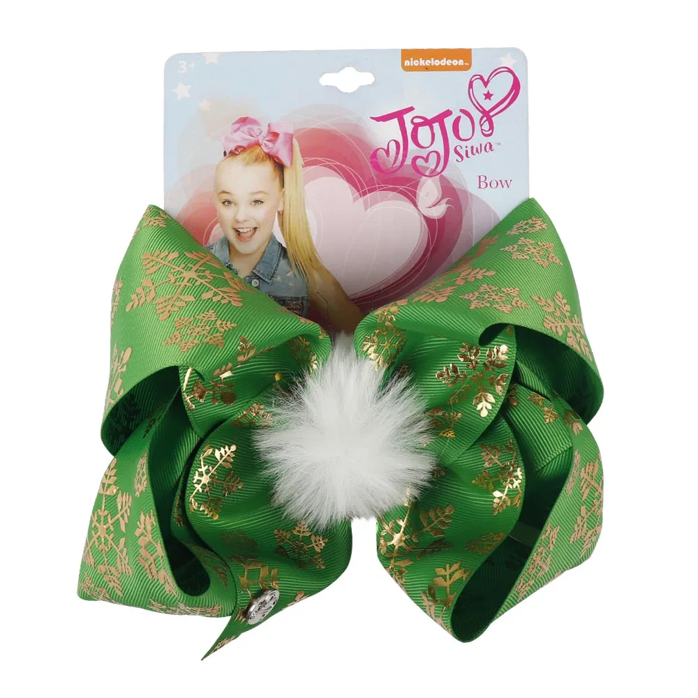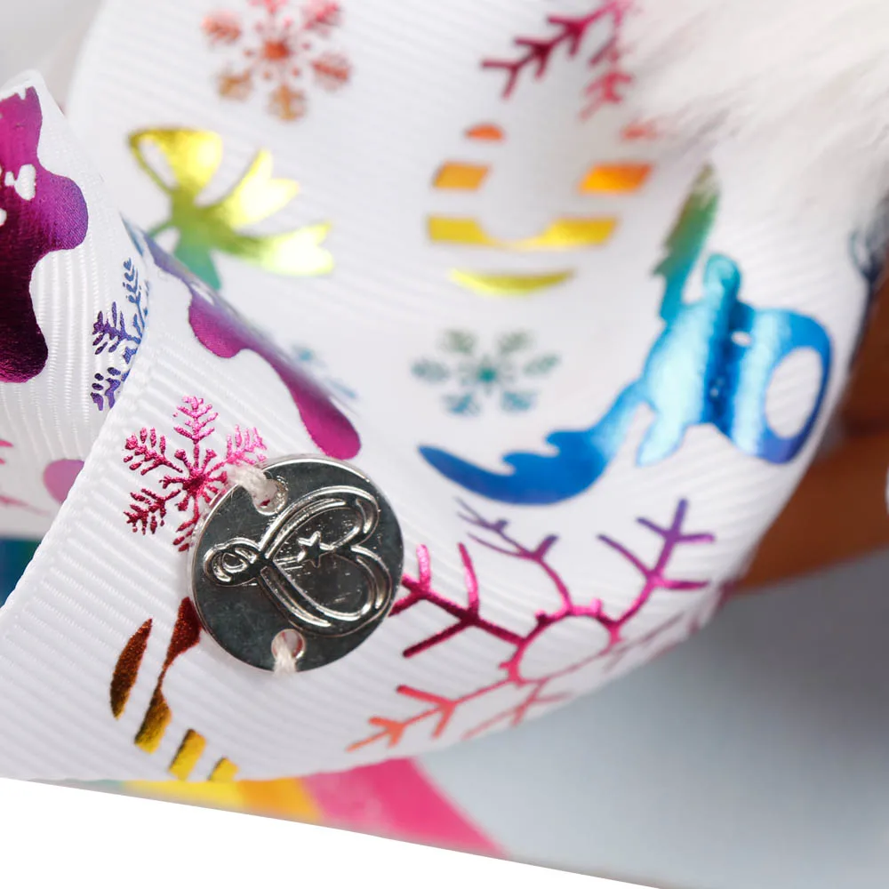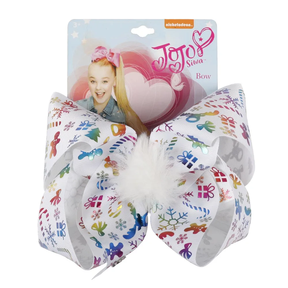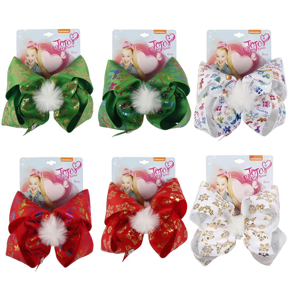 7” Pompom Christmas Hair Bows Printed Snow Gifts Large Hair Clips For Girls Santa Jo Jo Bows Winter Fashion Hair Accessories