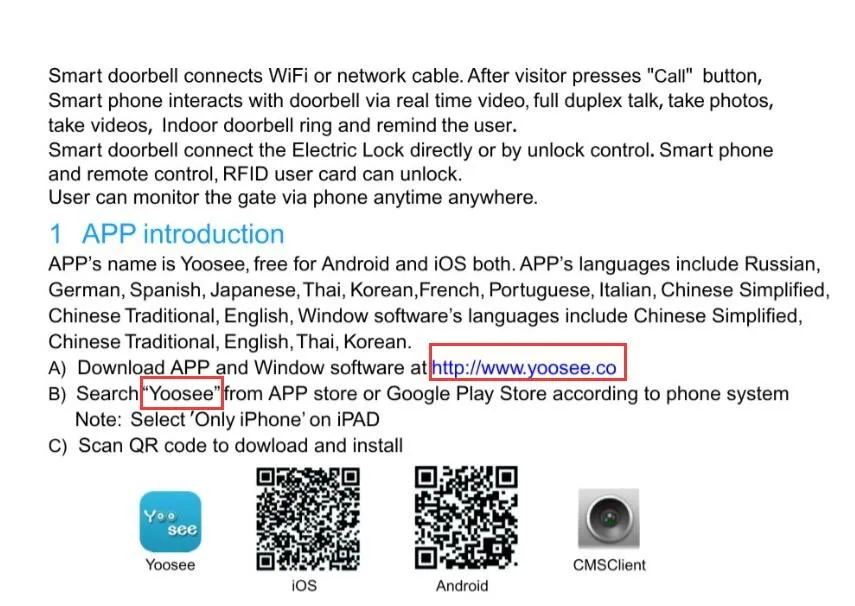 A User password is registered setting, Doorbell password is APP connect the doorbell to setting