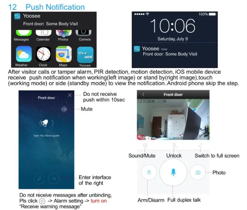 | Push | Push message to smart phone, Send pic to settings mail |