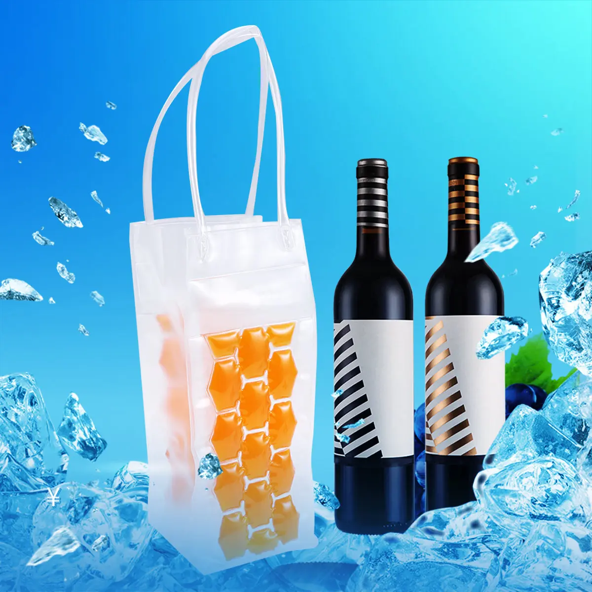 750ML PVC Double-sided Wine Bottle Freezer Bag Chilling Cooler Ice Bag Portable Beer Cooling Gel Holder Carrier 10 Colors