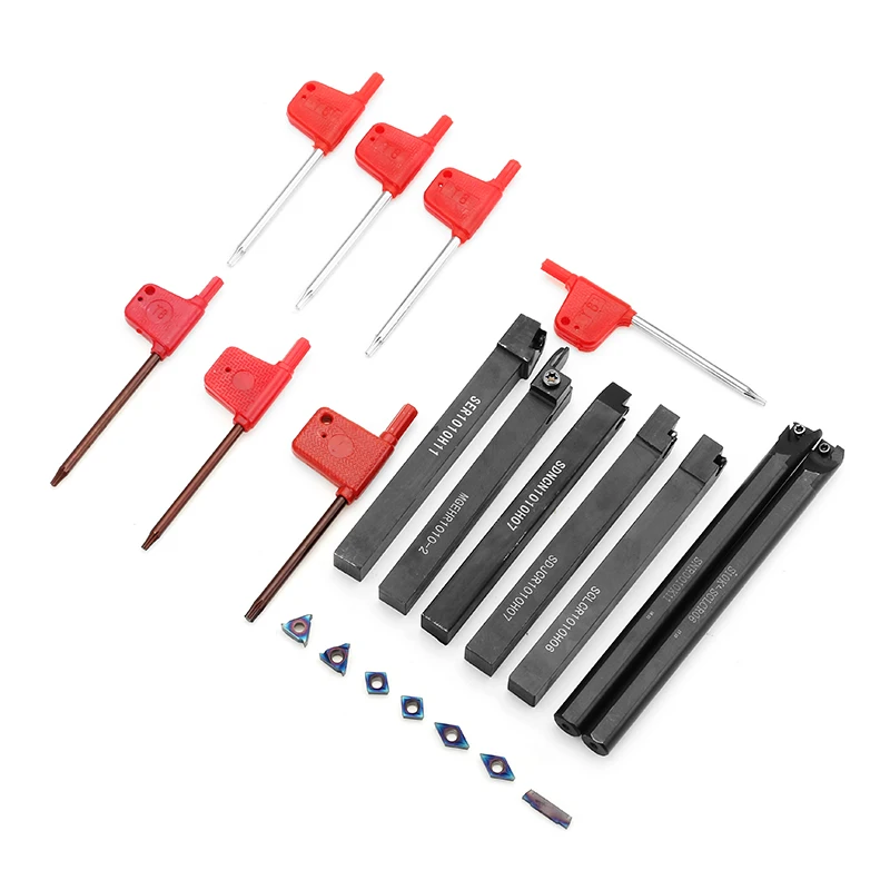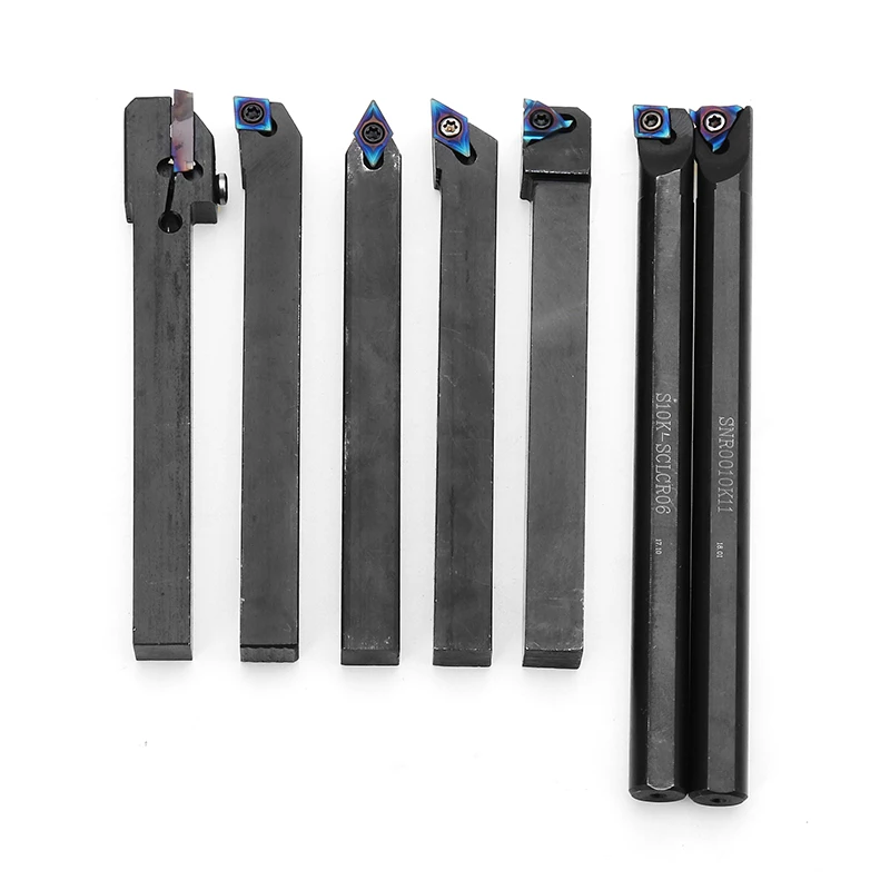 7pcs 10mm Shank Lathe Turning Tool Holder Boring Bar With Blue-nano Carbide Inserts