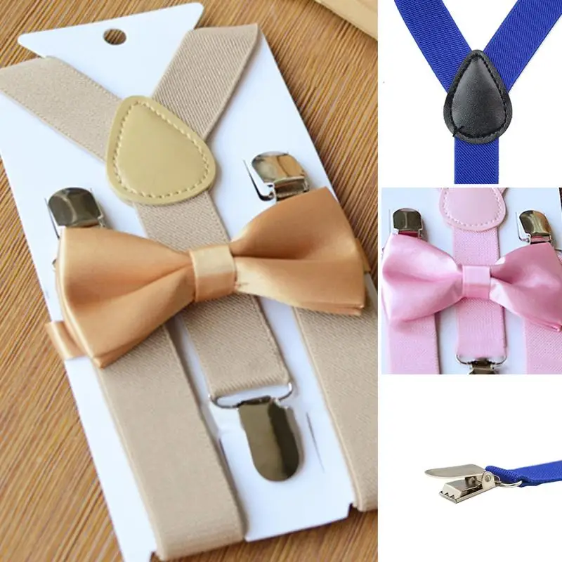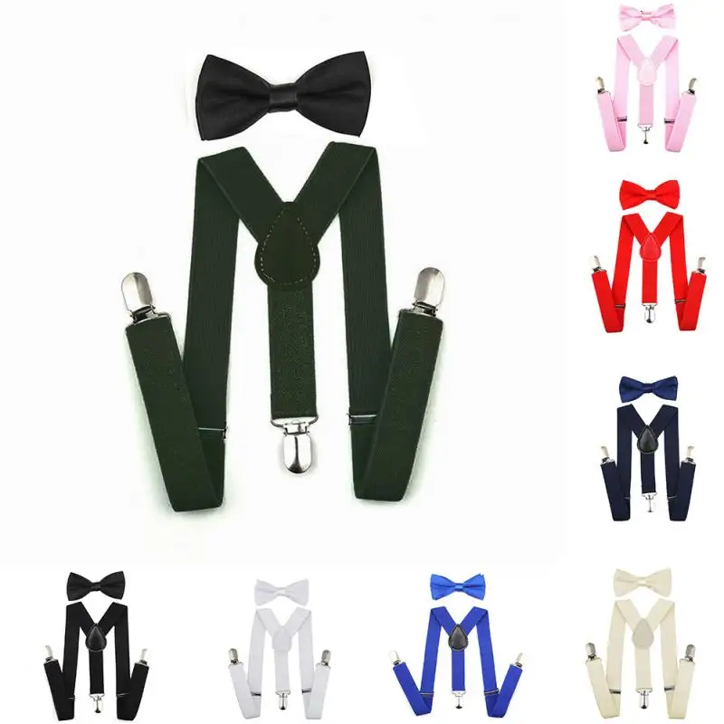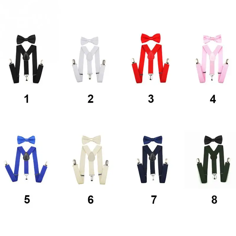 8 Colors Elastic Webbing Adjustable Kids Suspenders With Bowtie Bow Tie Set Performance Matching Ties Outfits For Girls Boys