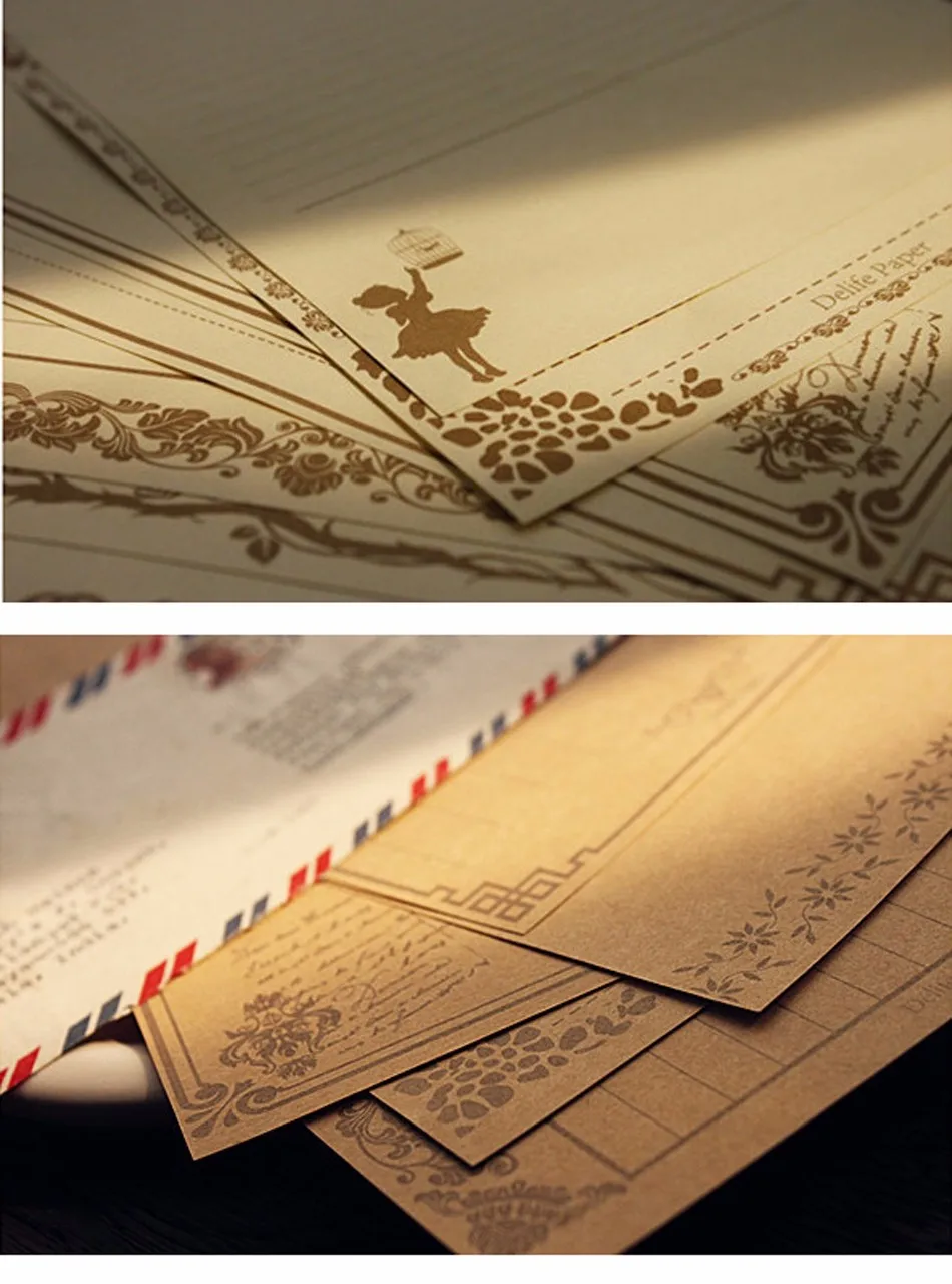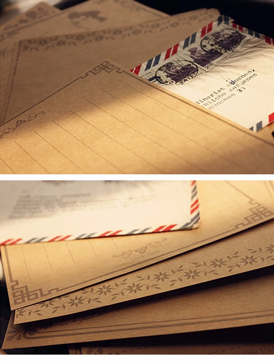 8 sheets/set European Vintage Style Writing Paper Letter Good Quality Culture Stationery Kraft Letter Office