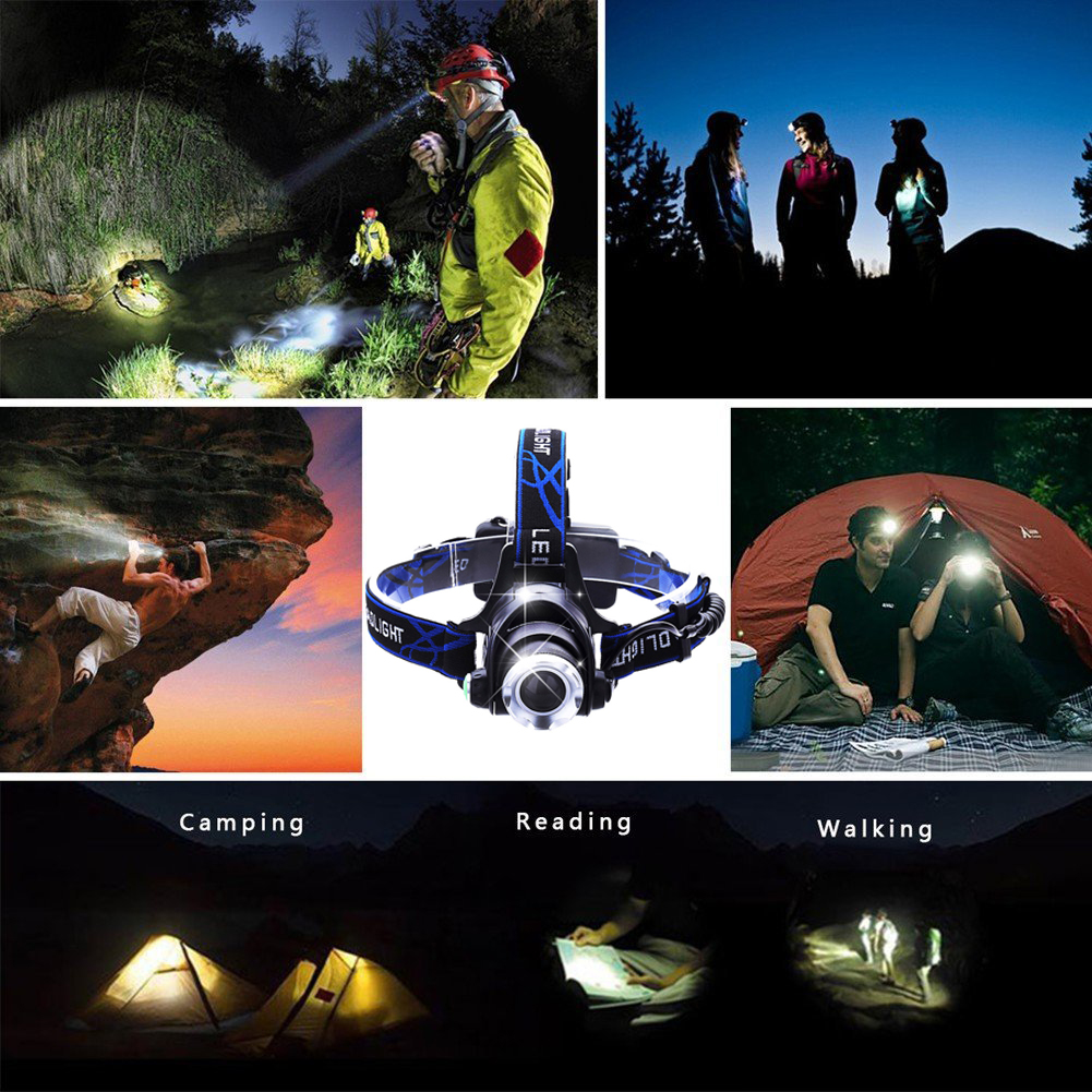 8000LM Cree XML-L2/ T6 Led Headlamp Zoomable Headlight 3 Mode Waterproof Head Torch flashlight lamp18650 Rechargeable Battery