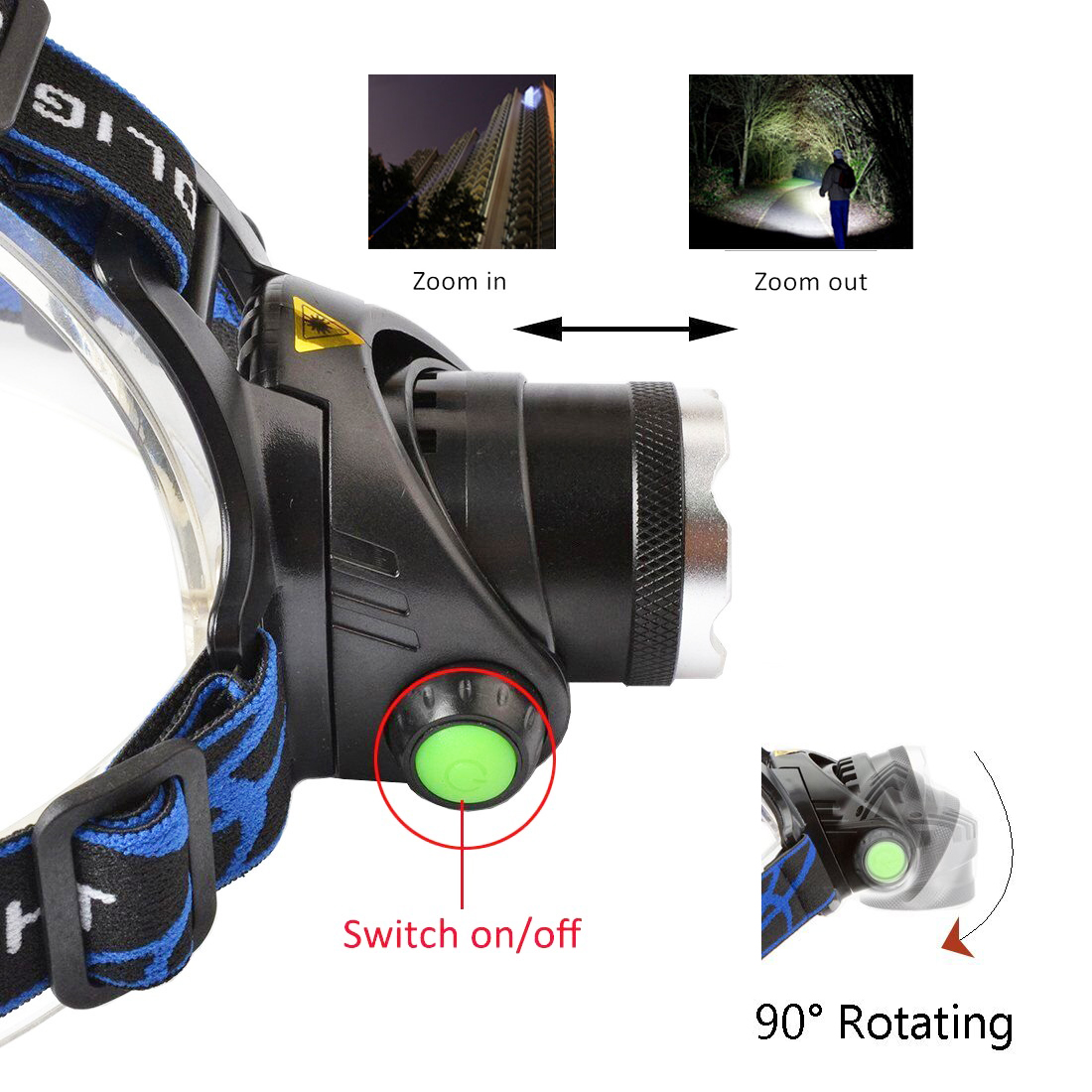 * Adjustable Focus, Zoomable LED Headlamp