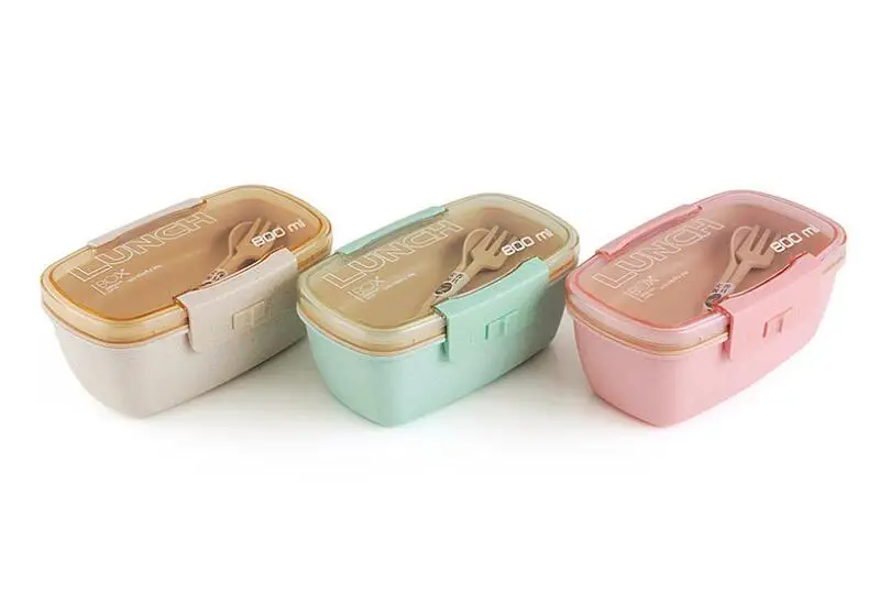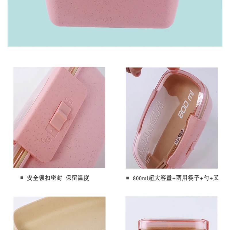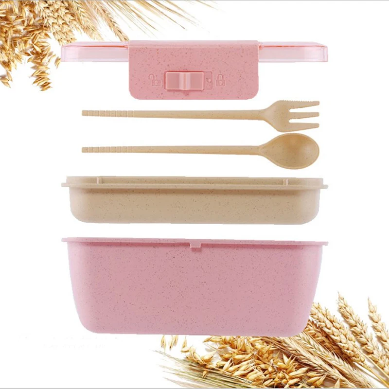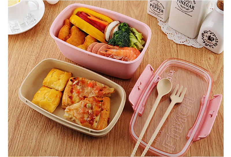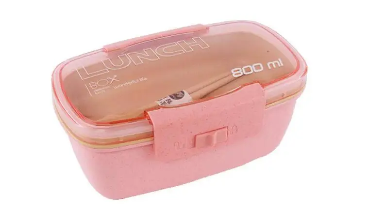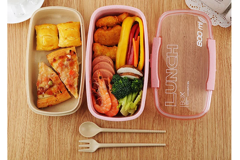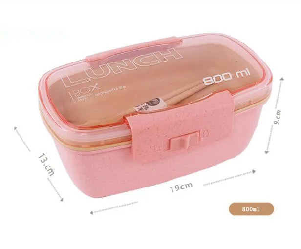 800ml Lunch Box For Kids Children 2 Layer Wheat Straw Bento Box Microwave Heated Food Container Kitchen Organizer