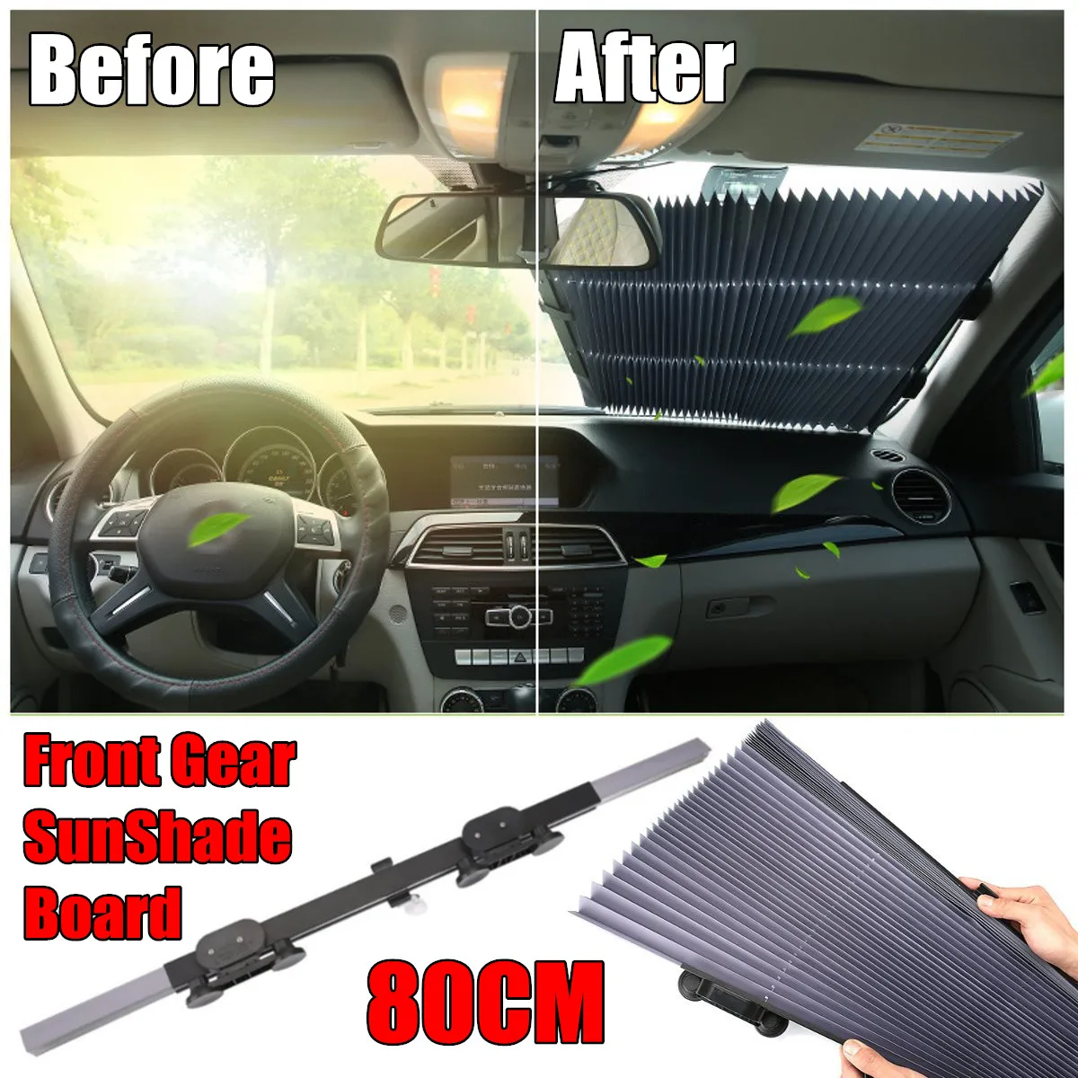 80CM Car Retractable Front Window Sun Shade Protector Board Auto Adjustable Front Windshield Sun Umbrella Board