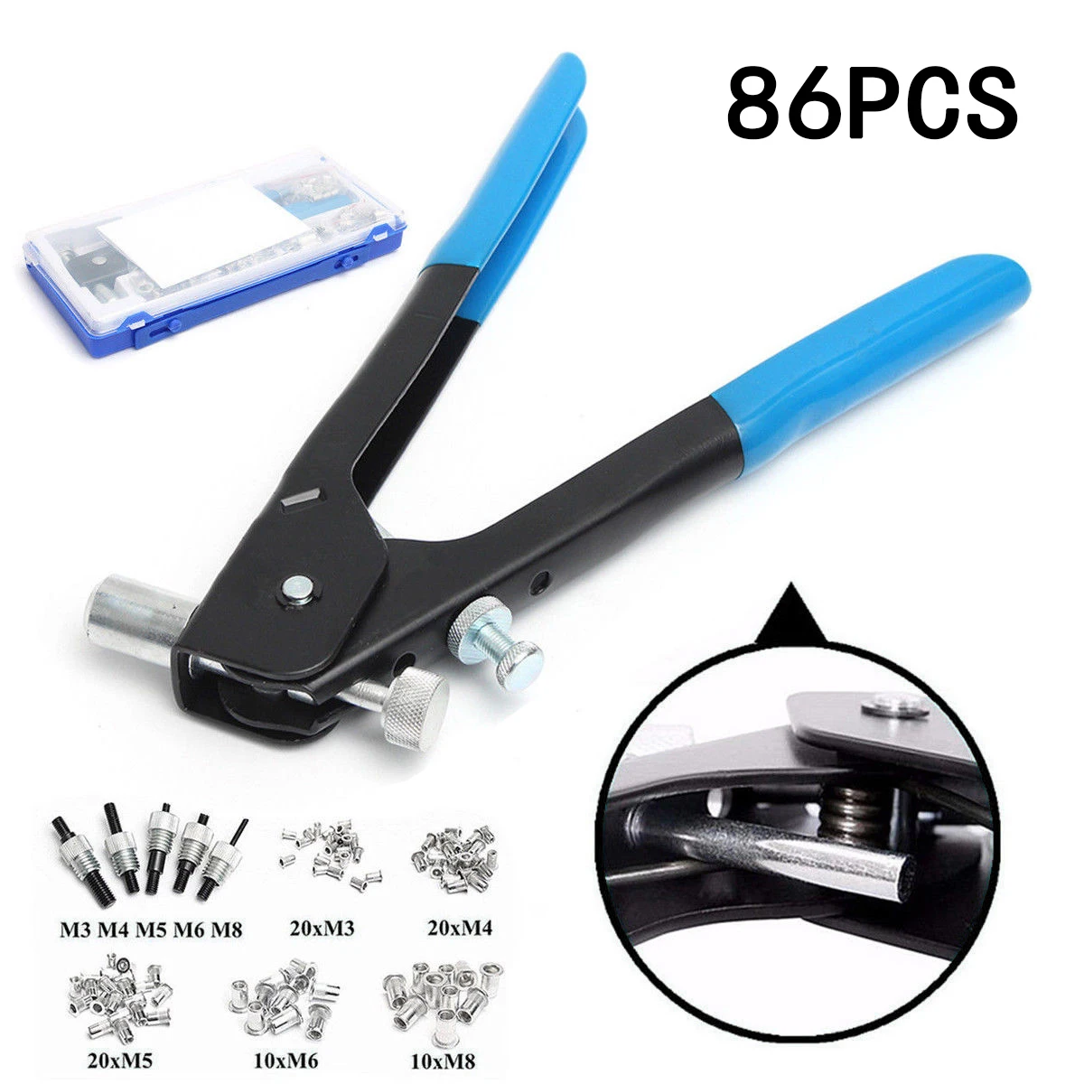 86pcs M3-M8 Threaded Nut Rivet Insert Tool Riveter Nut Riveting Kit
