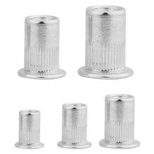 - With open end, small flange, round hole, threaded inner wall and partial anti-skid surface, these flat head rivet nut has a good performance of fastener function.