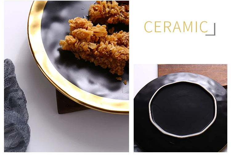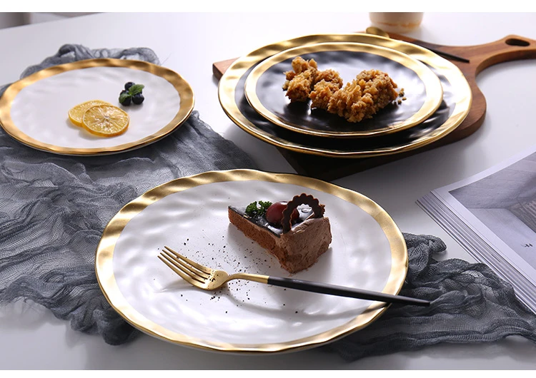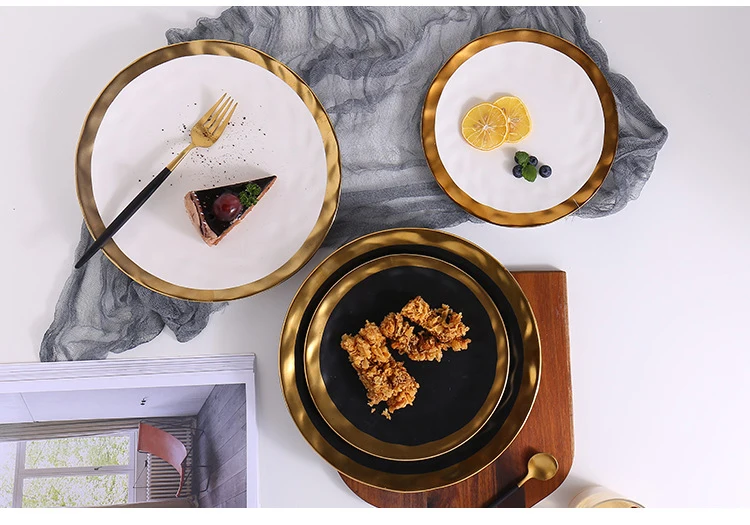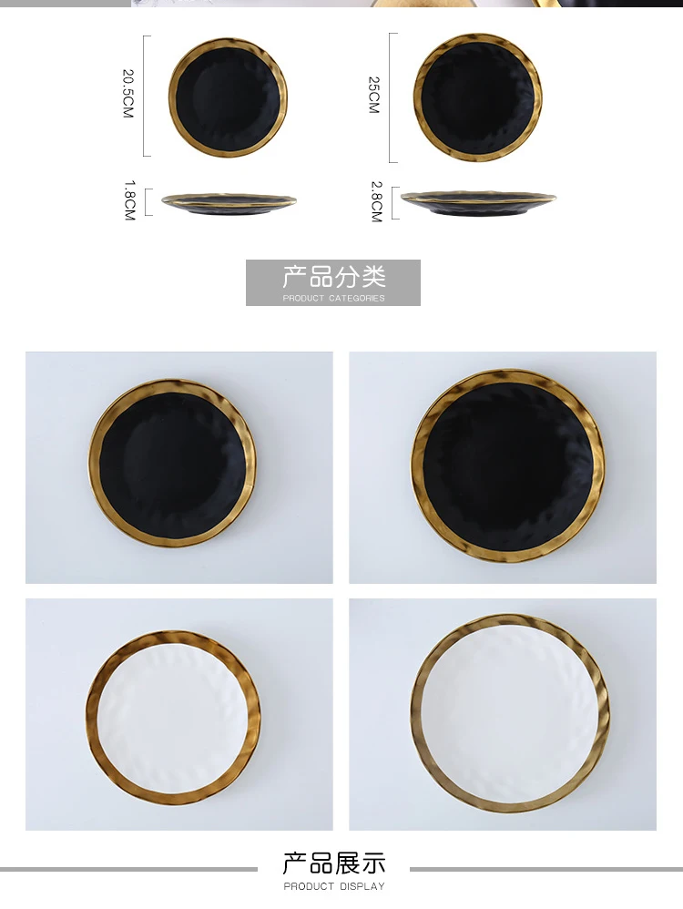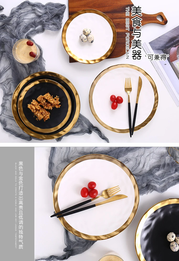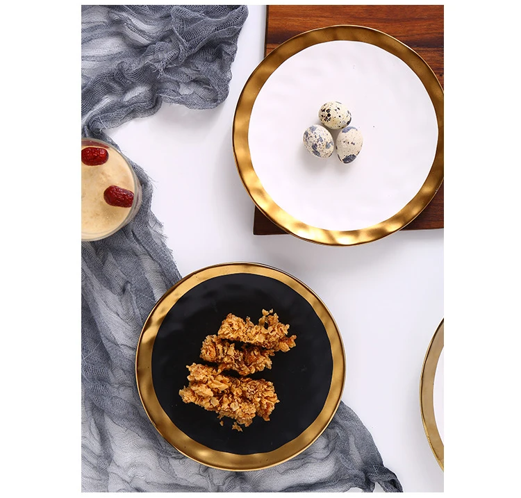 | Item Name | 8inch 10inch Gold Ceramic plate dish White Black Tableware set Porcelain jewelry luxury Service plate Tray sets Kitchen Toos |