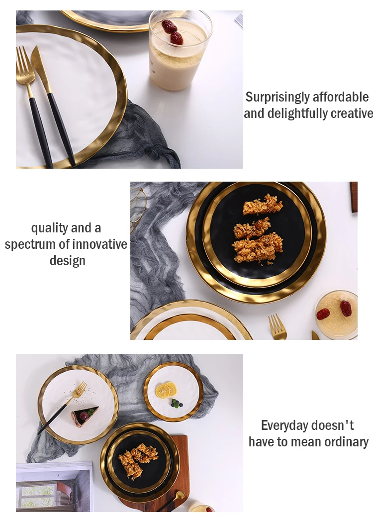 | Item Name | 8inch 10inch Gold Ceramic plate dish White Black Tableware set Porcelain jewelry luxury Service plate Tray sets Kitchen Toos |