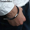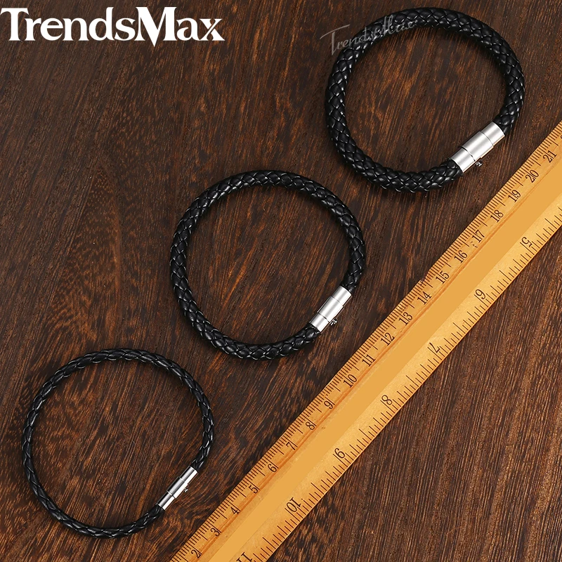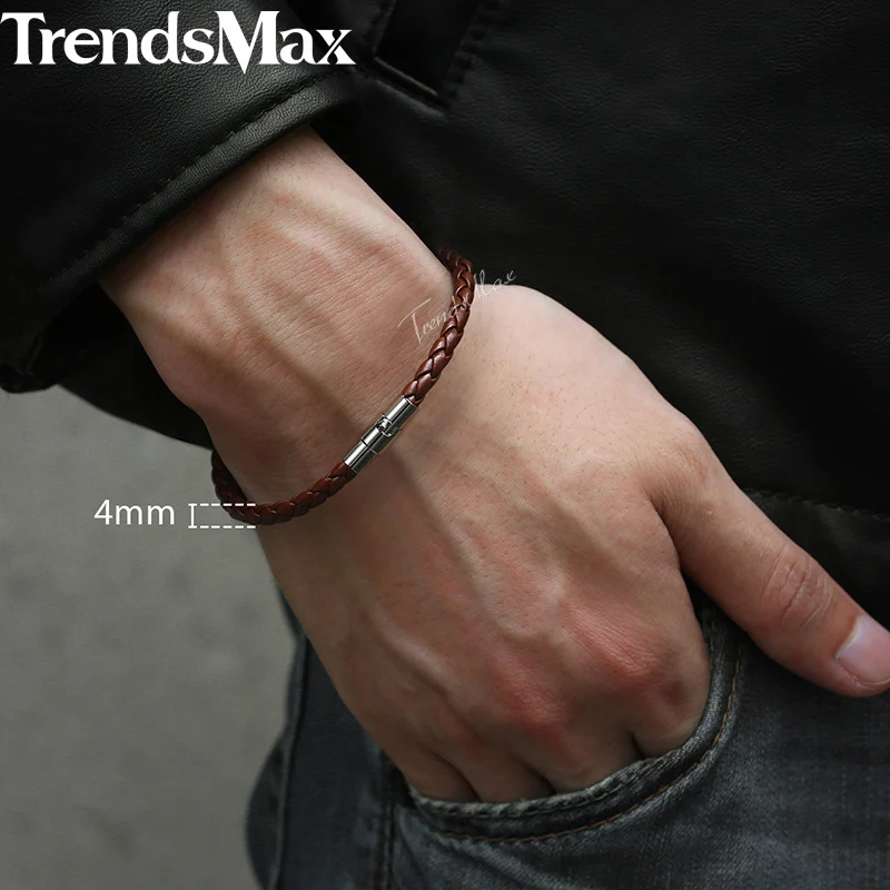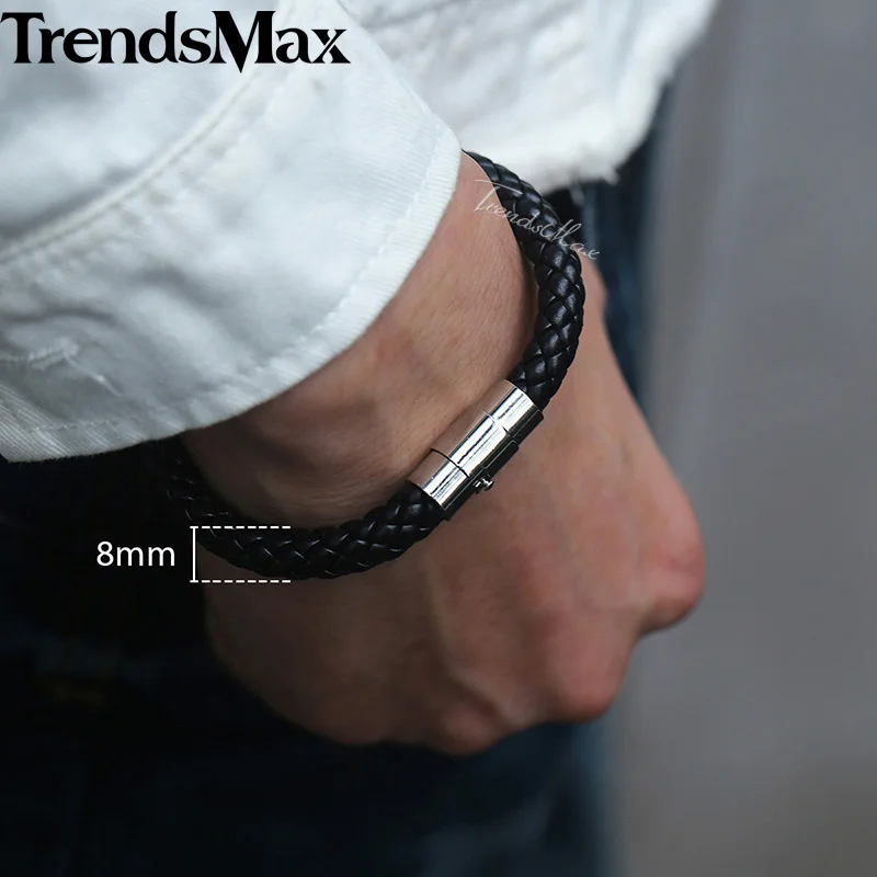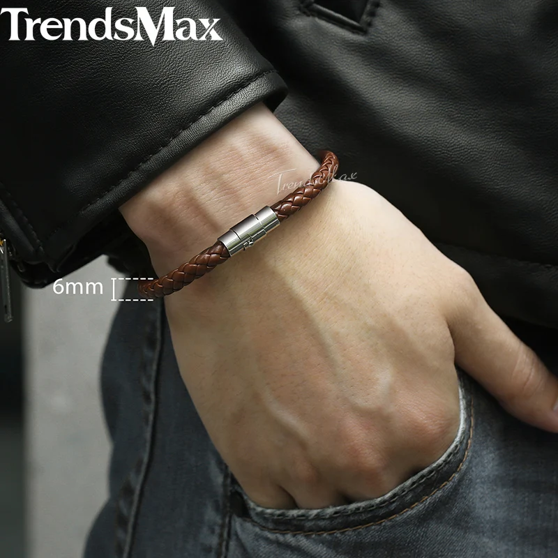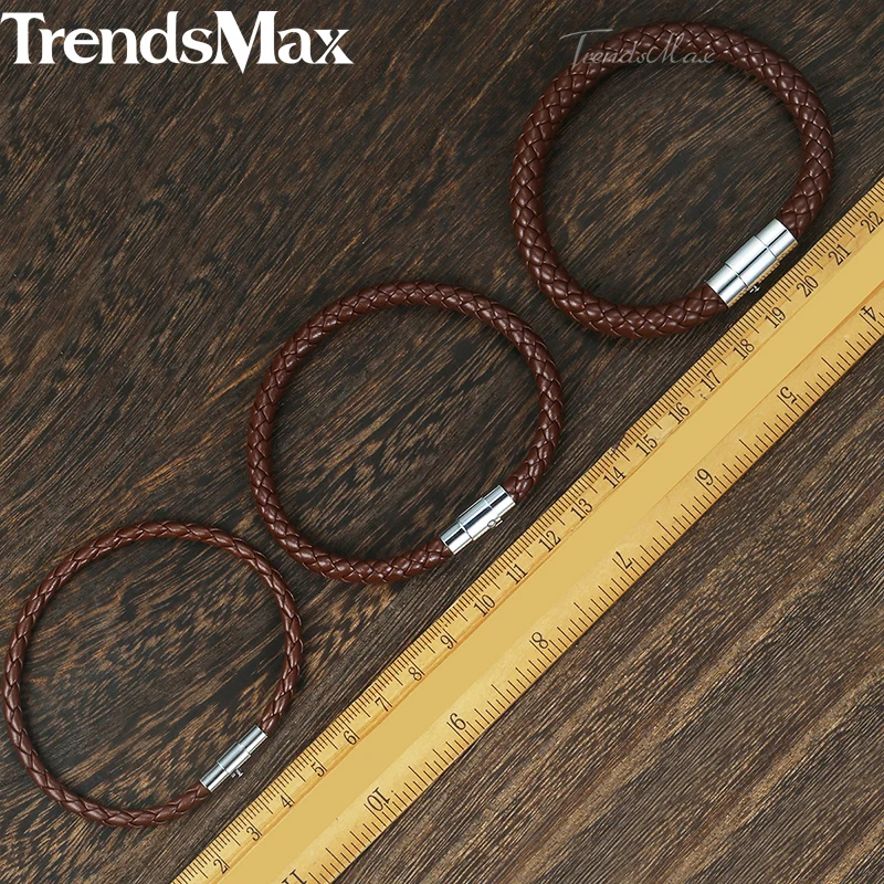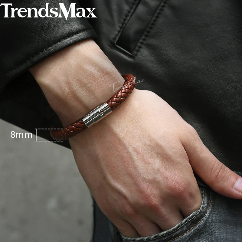 8inch Men’s Brown Black Leather Bracelet Stainless Steel Magnetic Clasp Bracelets 2018 Men Fashion Jewelry Dropshipping LBM118B