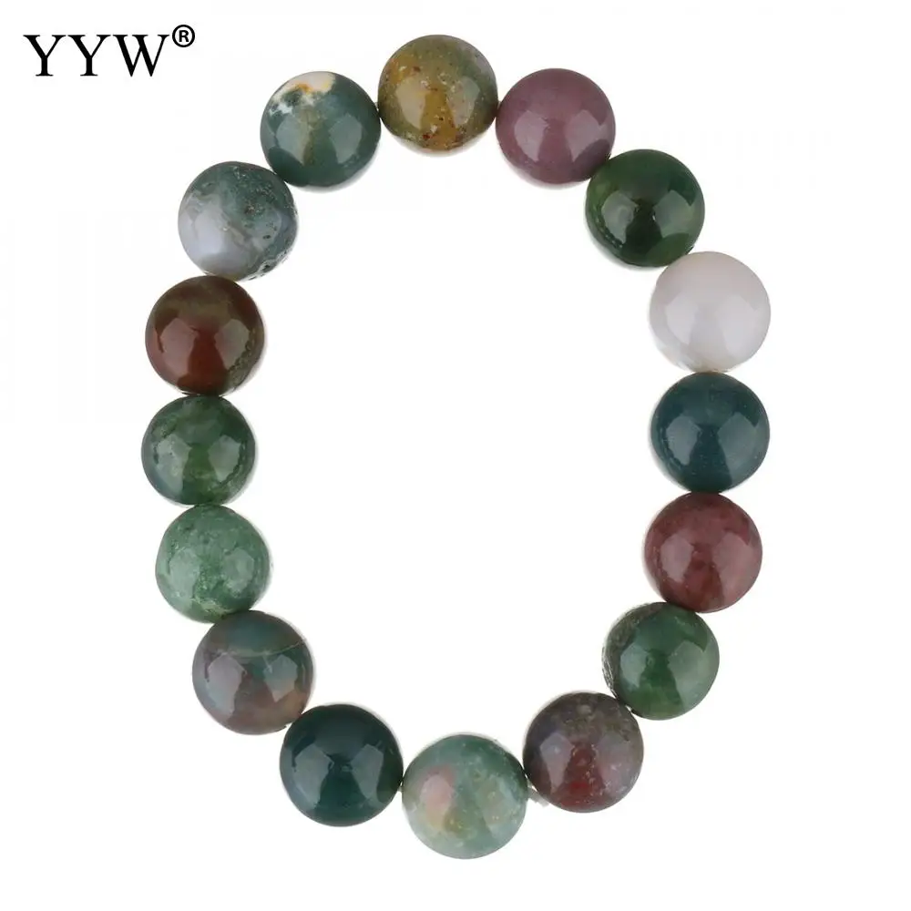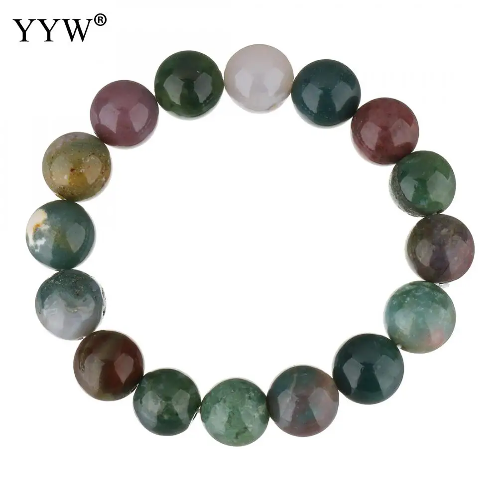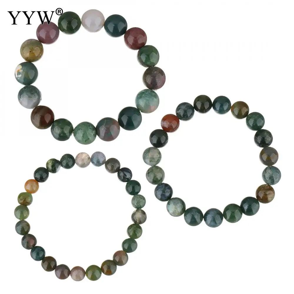 8mm 10mm 12mm Round Ball Beaded Strand Bracelets Simple Circle Indian Agata Stone Bracelets Unisex Approx 7.5 Inch Strand Men