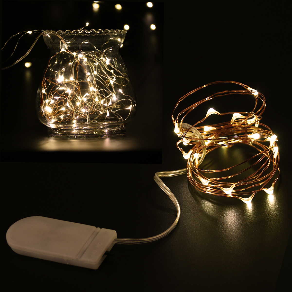 The LED Starry copper wire String Lights are made with a fine bendable copper wire that can conform to any shape to add a beautiful decorative accent. Flexible yet durable, the string lights are perfect for positioning lights to any decorative project. Colored LEDs are individually mounted along the string and provide an elegant sparkling glow that can be seen from any angle.