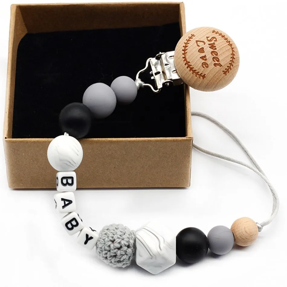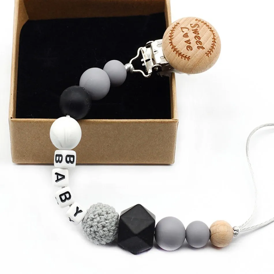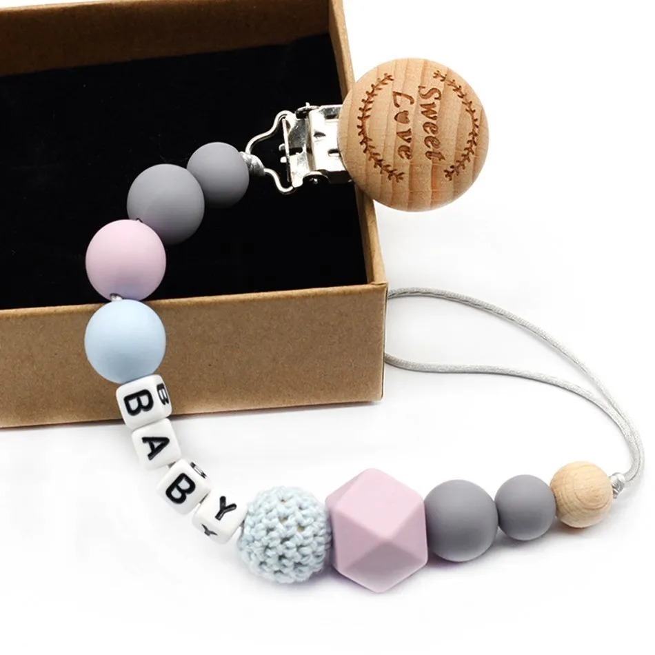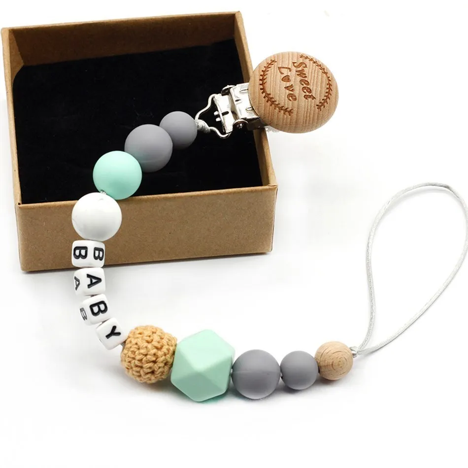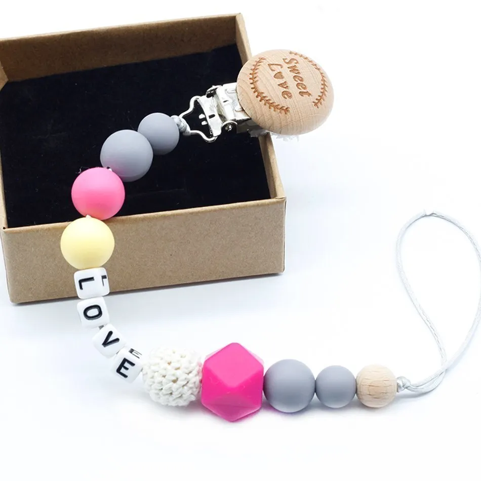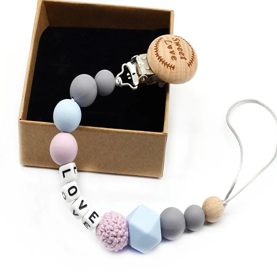 New 9 styles DIY holder personalized name silicone baby pacifier clip pacifier chain teething pacifier chew toy baby dummy clips