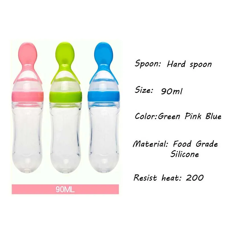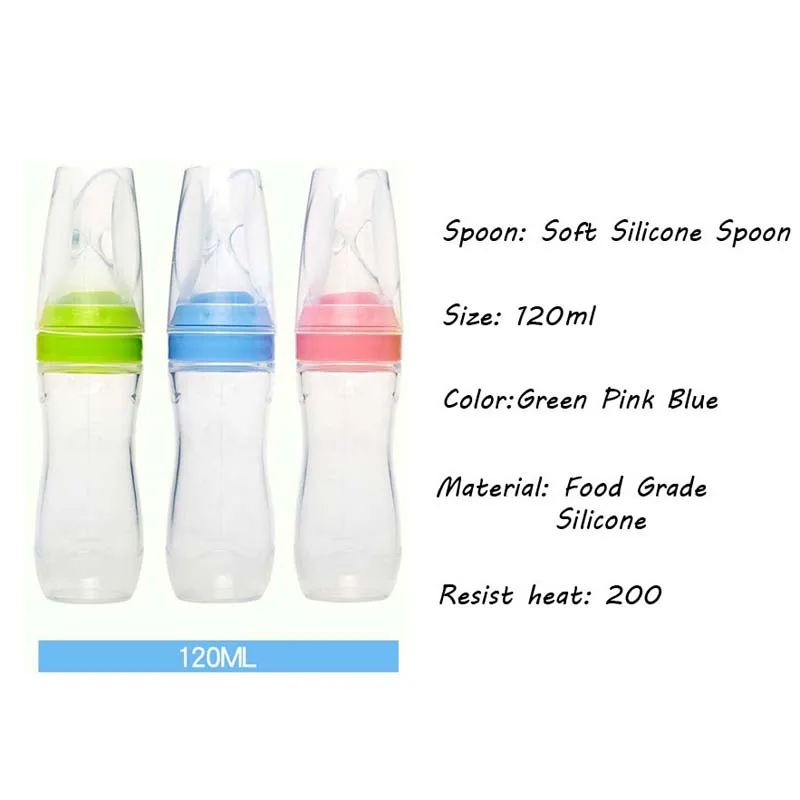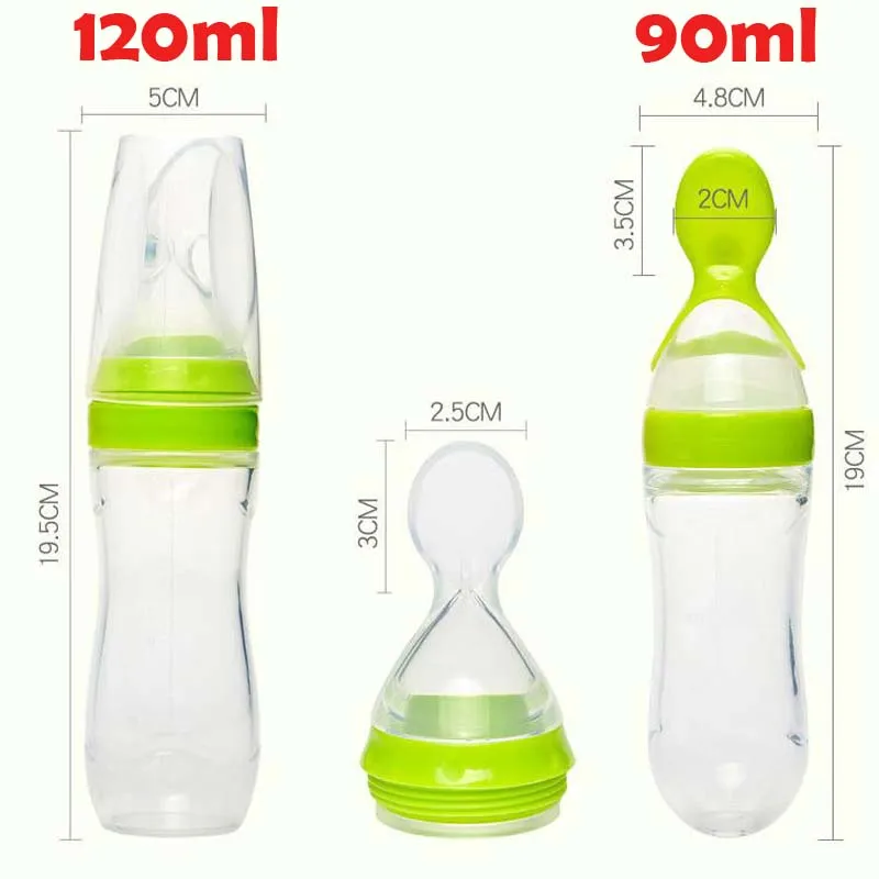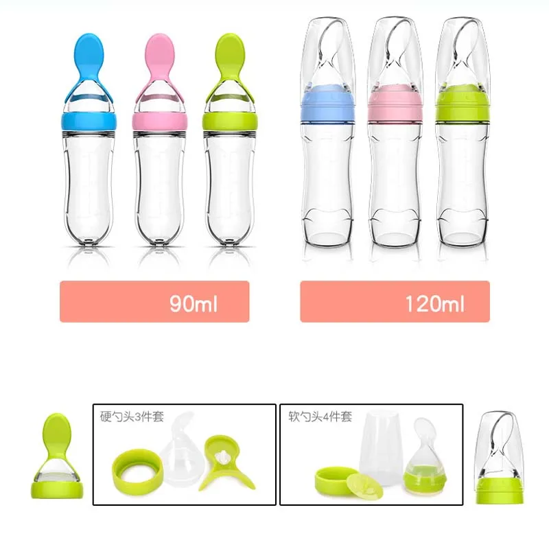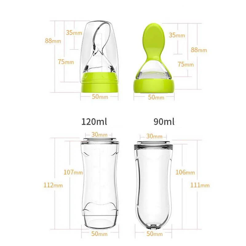 90/120ml Infant Baby Soft Silicone Food Supplement Toddler Rice Cereal Feeding Bottles Spoon Milk Food Storage Cup