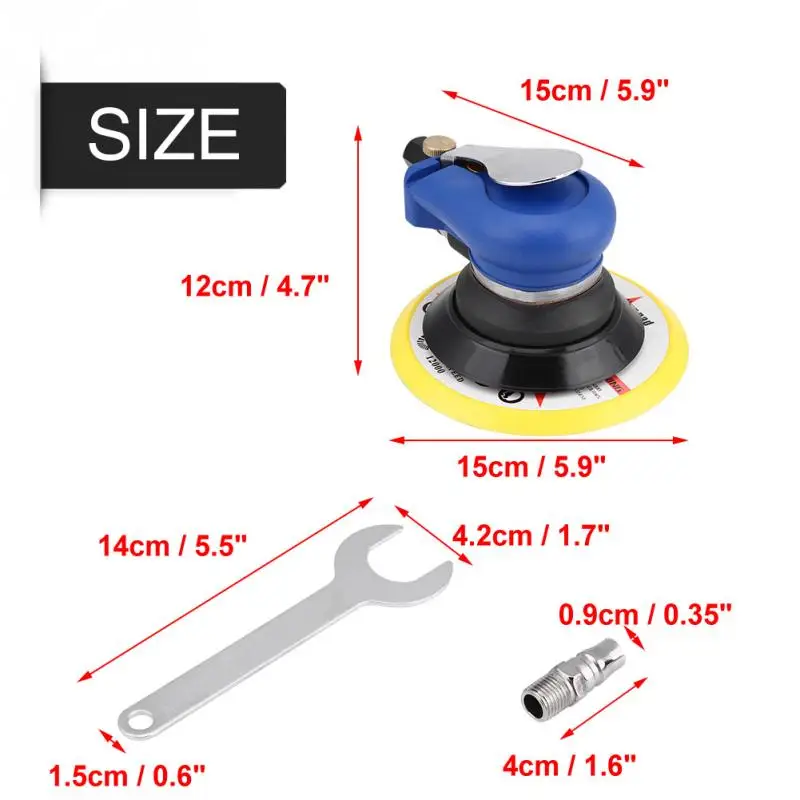 Round Air Palm Random Orbital Sander 9000RPM Pneumatic Polisher Hand Sanding Tool