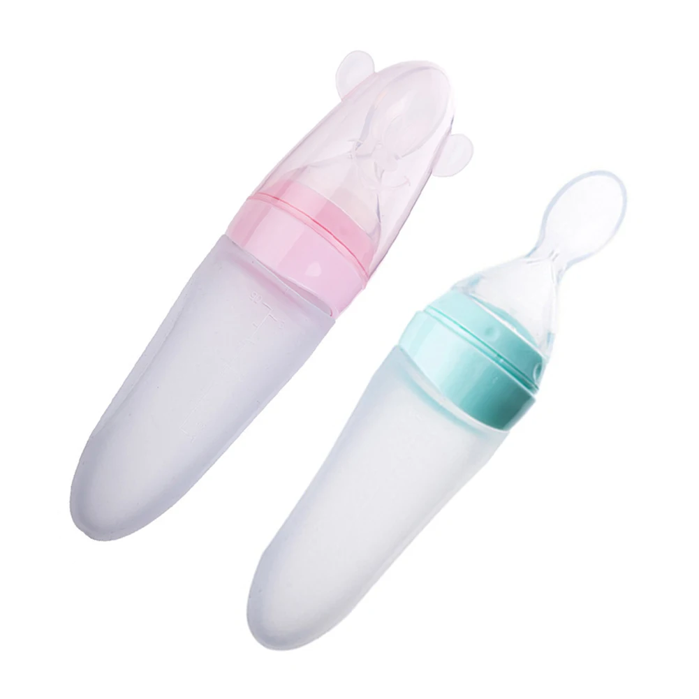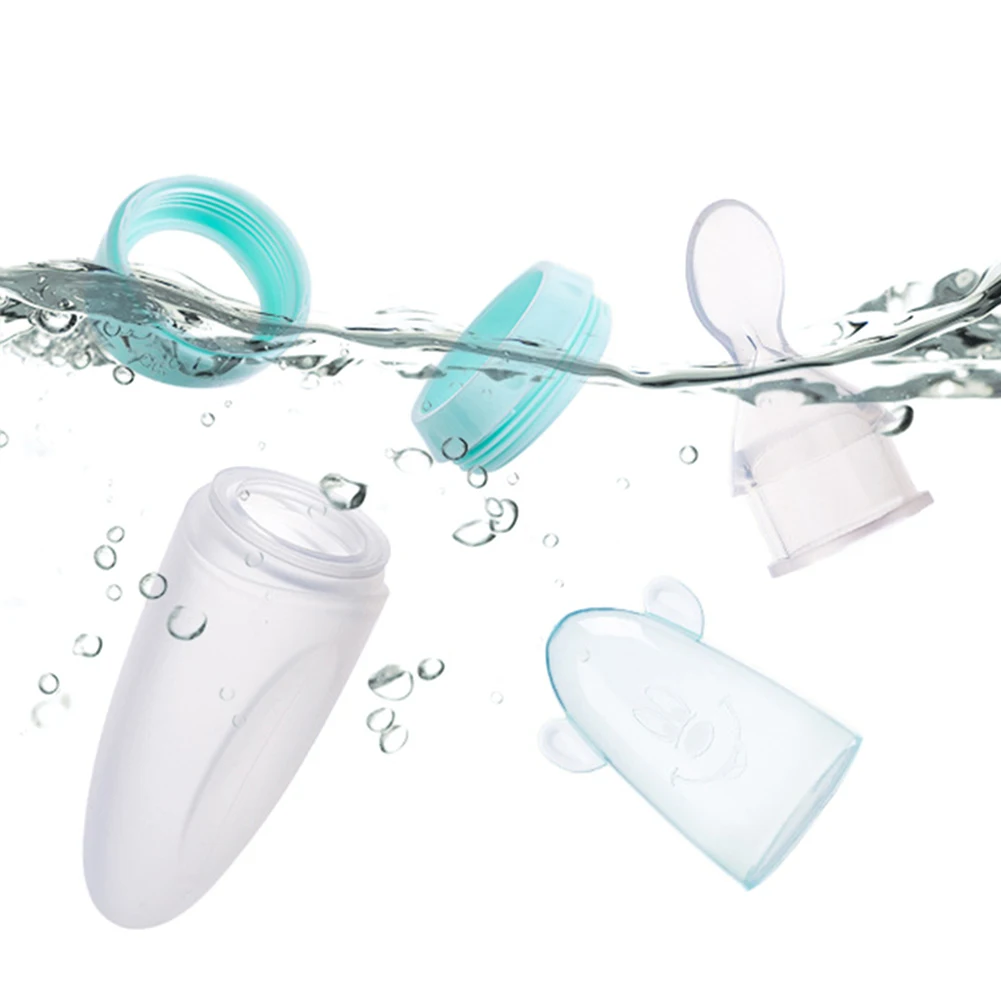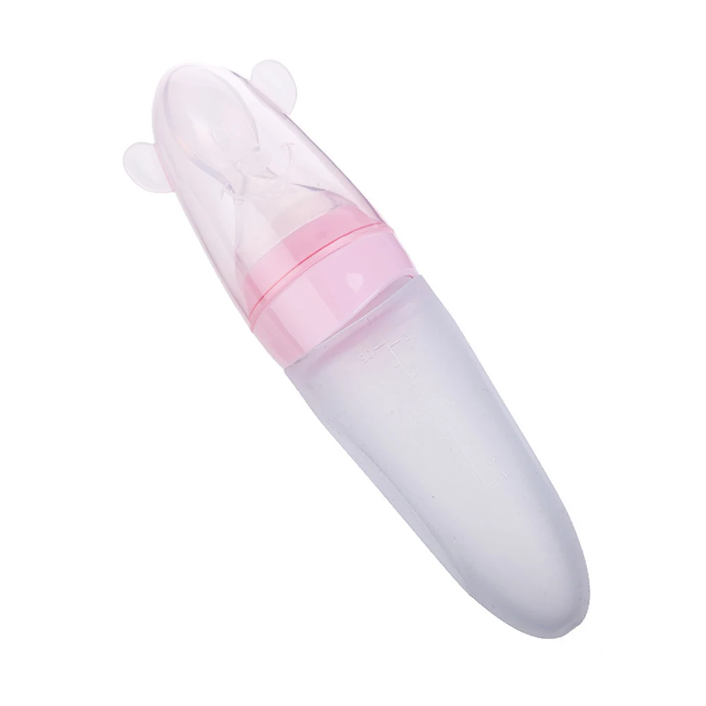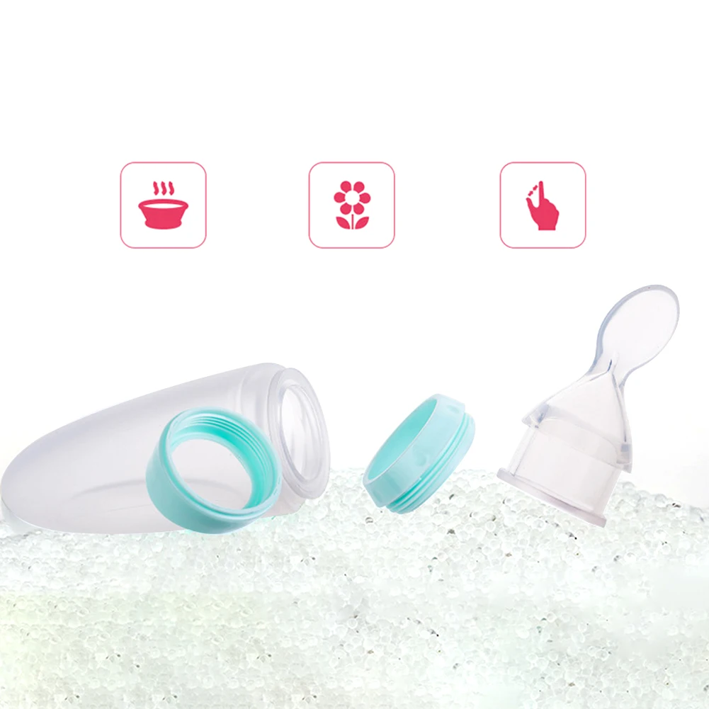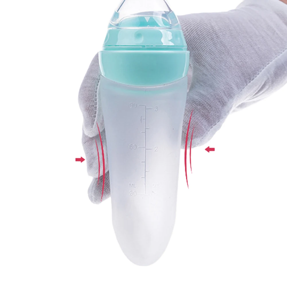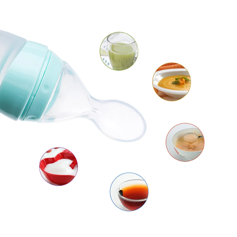 90ML Cartoon Silicone Rice Cereal Spoon Baby Silicone Squeezing Feeding Spoon Rice Cereal Bottle Auxiliary Food Feeder