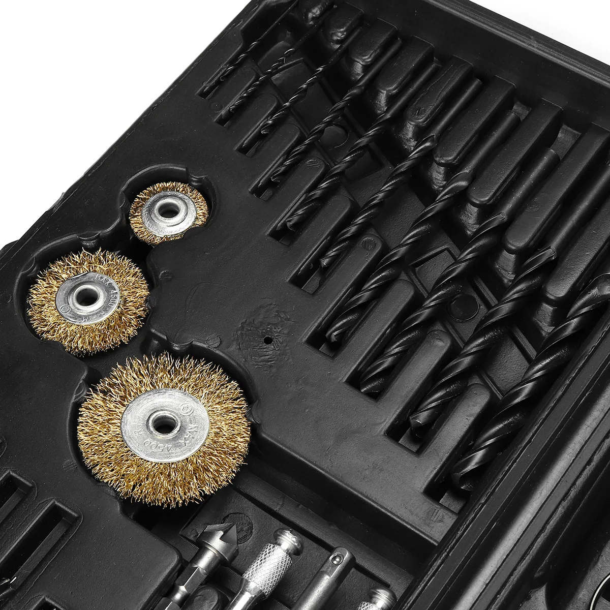 – For DIY, repairs, carpentry, wood working, metal work, concrete, brick work, all screwing and polishing needs – this set has you covered.