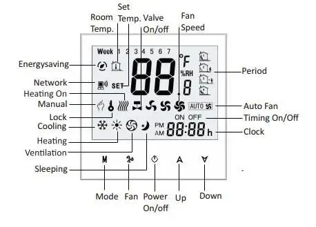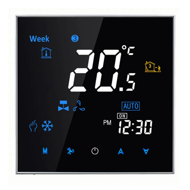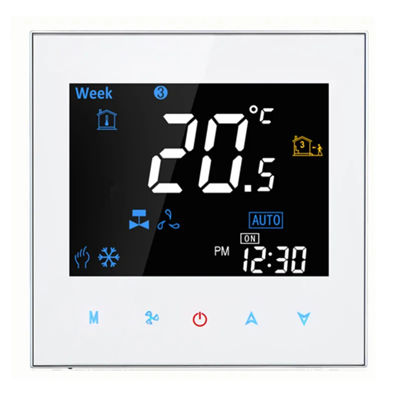 95~240VAC Two Pipe LCD Weekly Programmable Central Air Conditioning Room Fan Coil Thermostat without Wifi Function