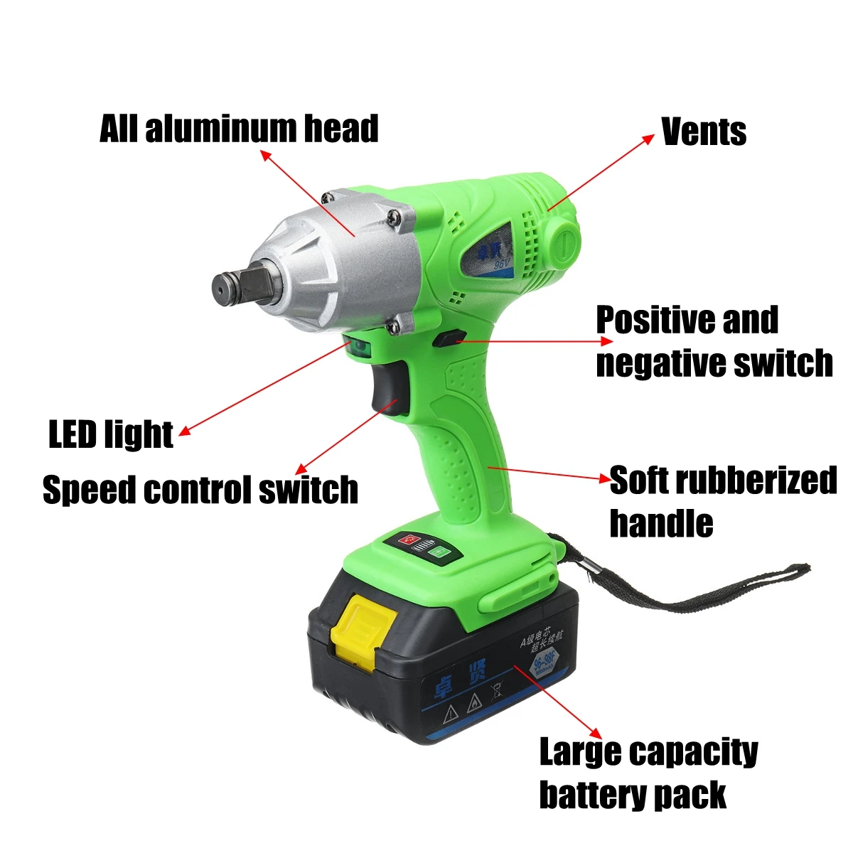 96V Li-ion 0-2000rpm 6000mAh 320n.m Electric Impact Wrench DIY Household Electric Wrench Cordless Drill Cordless Wrench