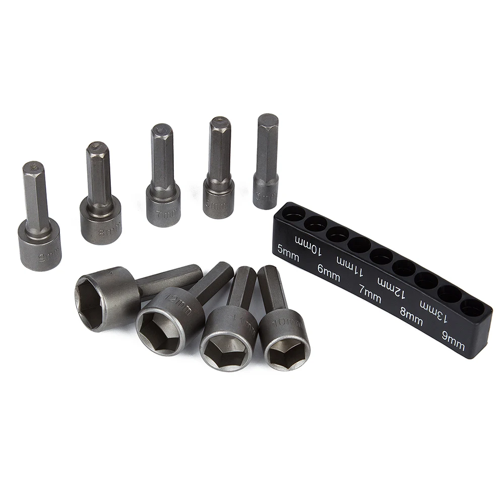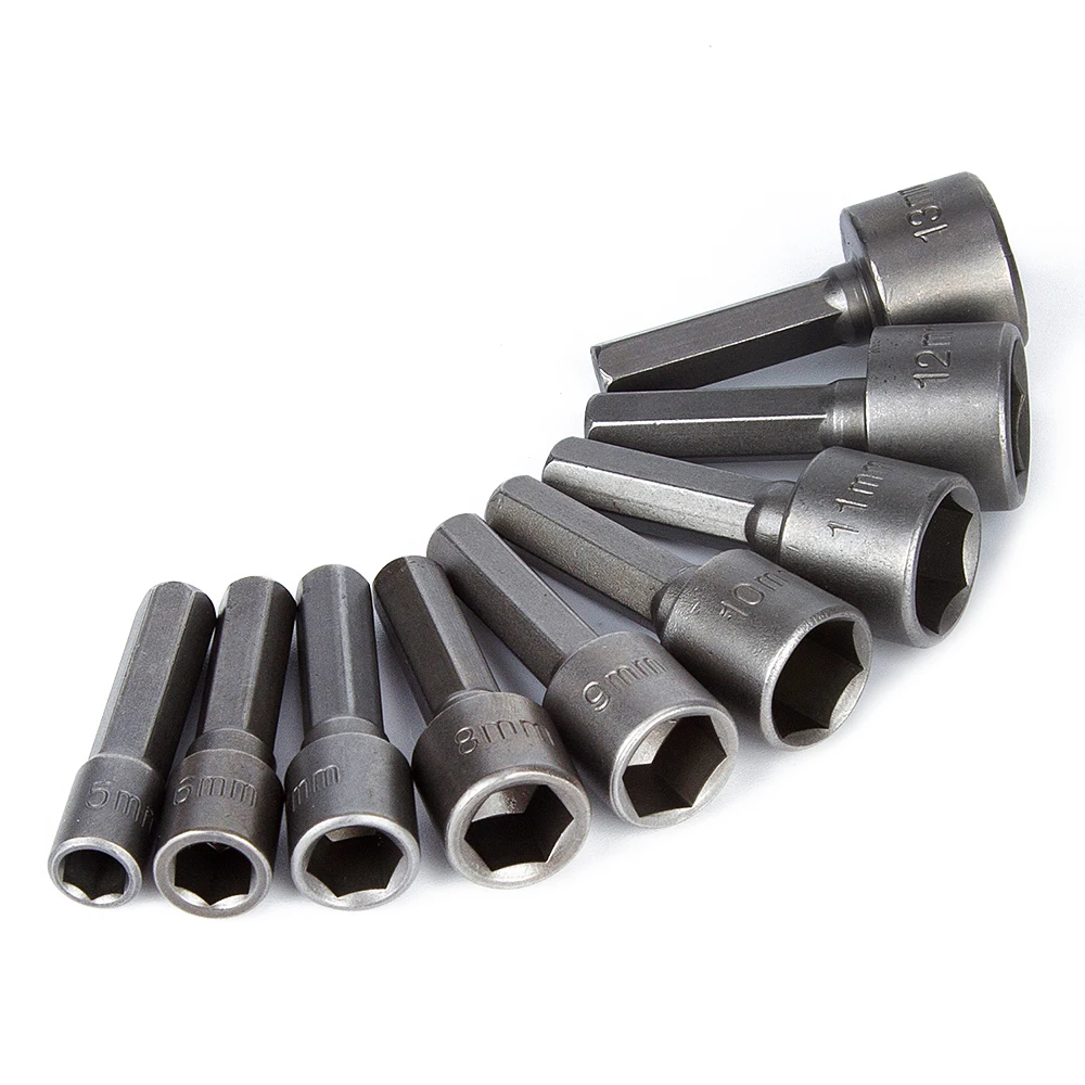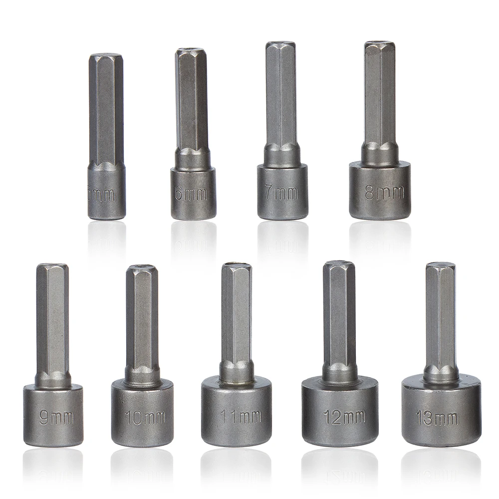 9pcs/set 5mm-13mm 1/4 Inch Hex Shank Socket Sleeve Nozzles Nut Driver Bit Set Drill Bit Adapter Hex Power Tools