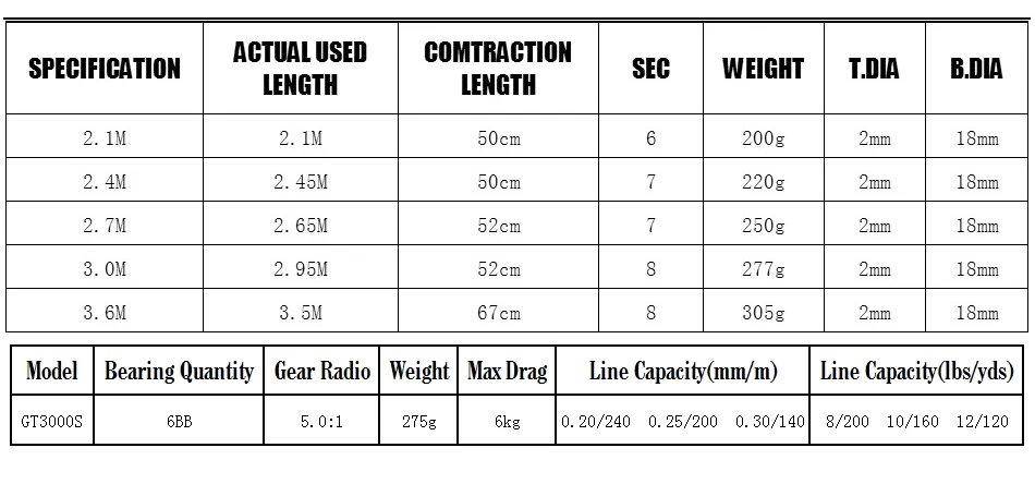 Goture Sword Telescopic Spinning Fishing Rod Combo 2.1M-3.6M With GT3000S Fishing Reel Kit Sea Fishing Tackle