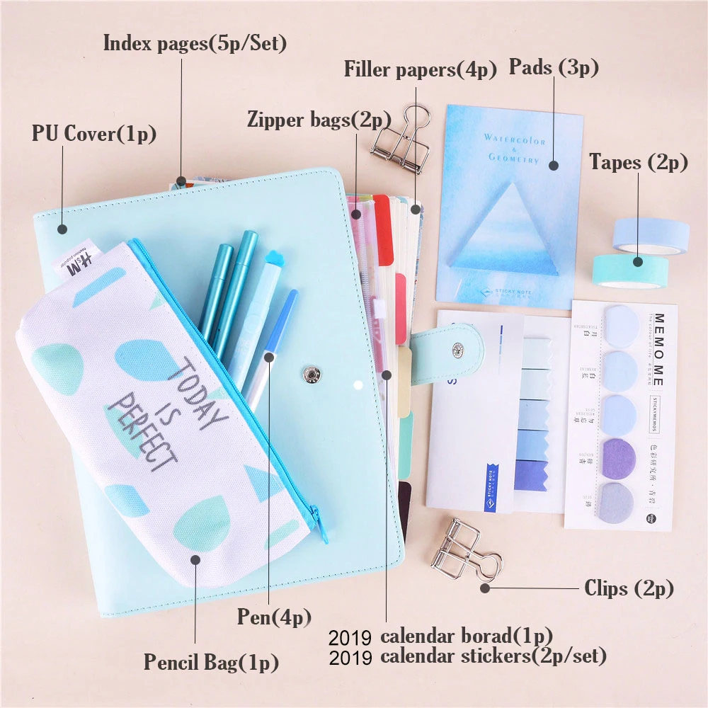 A5A6 Great Value Stationery Spiral Notebook Set With Pens Kawaii Memo Pads 2019 Sticker DIY Supply Planner Suit
