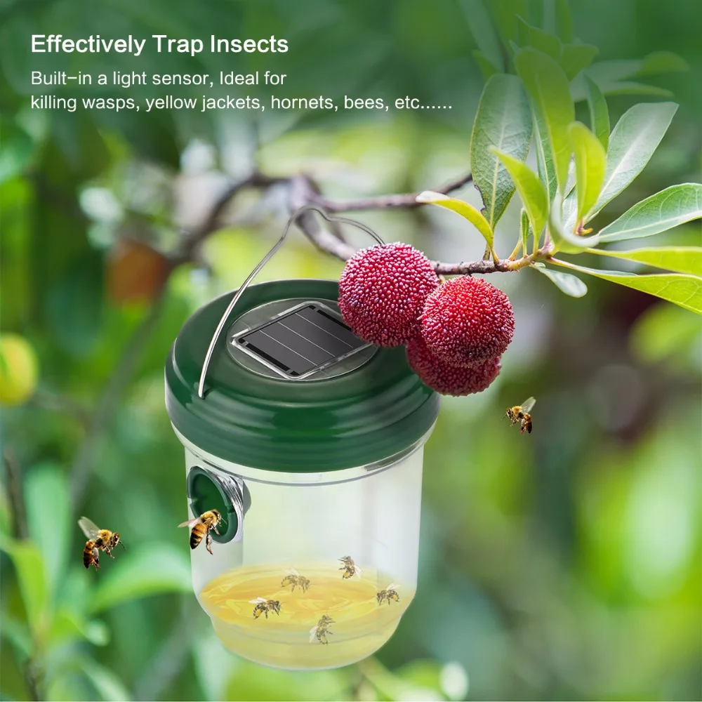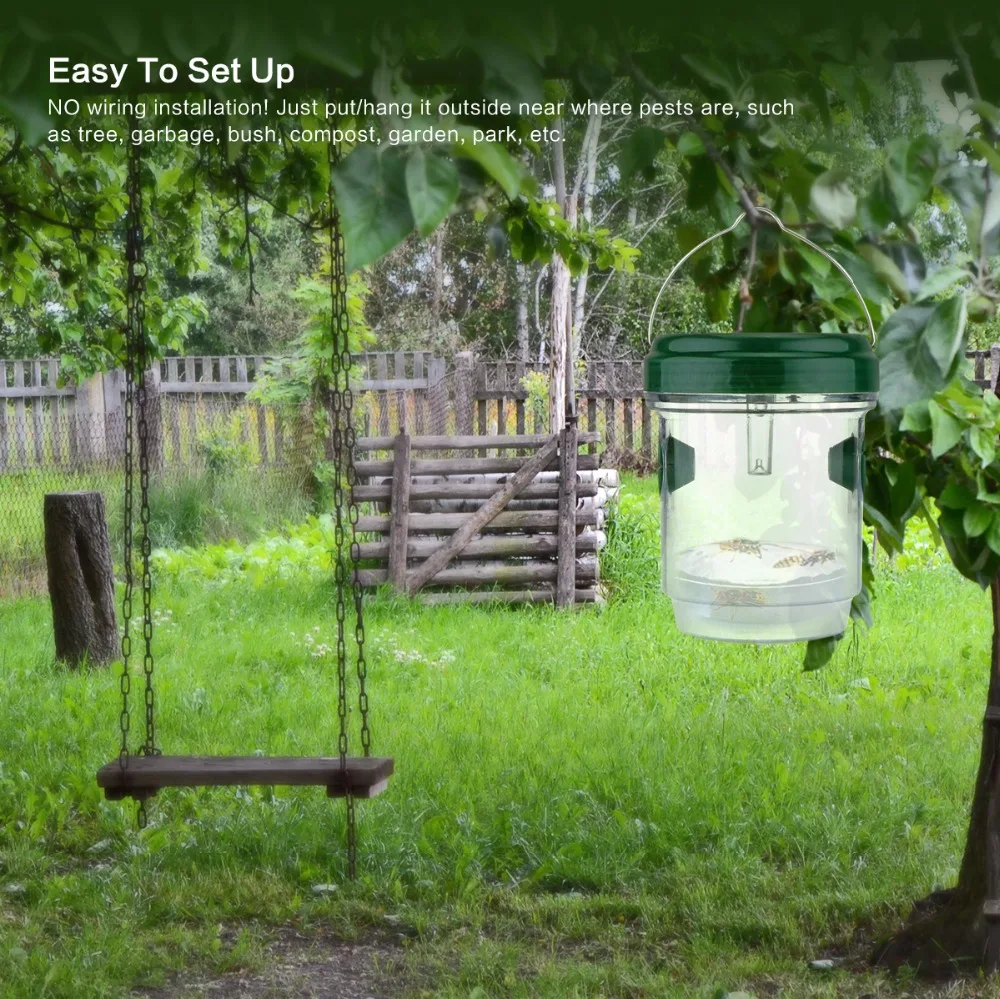 Effectively Trap Insects : Just put some water, grapping glue, honey, beer or other honey liquid in this wasp trap, insects will be attract inside by the sugary liquid and blue UV light, then eventually drown in the liquid or become dehydrated in the blazing summer heat.