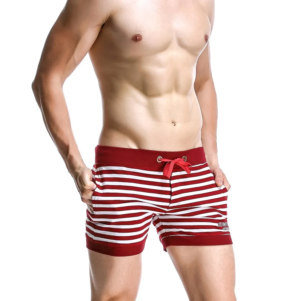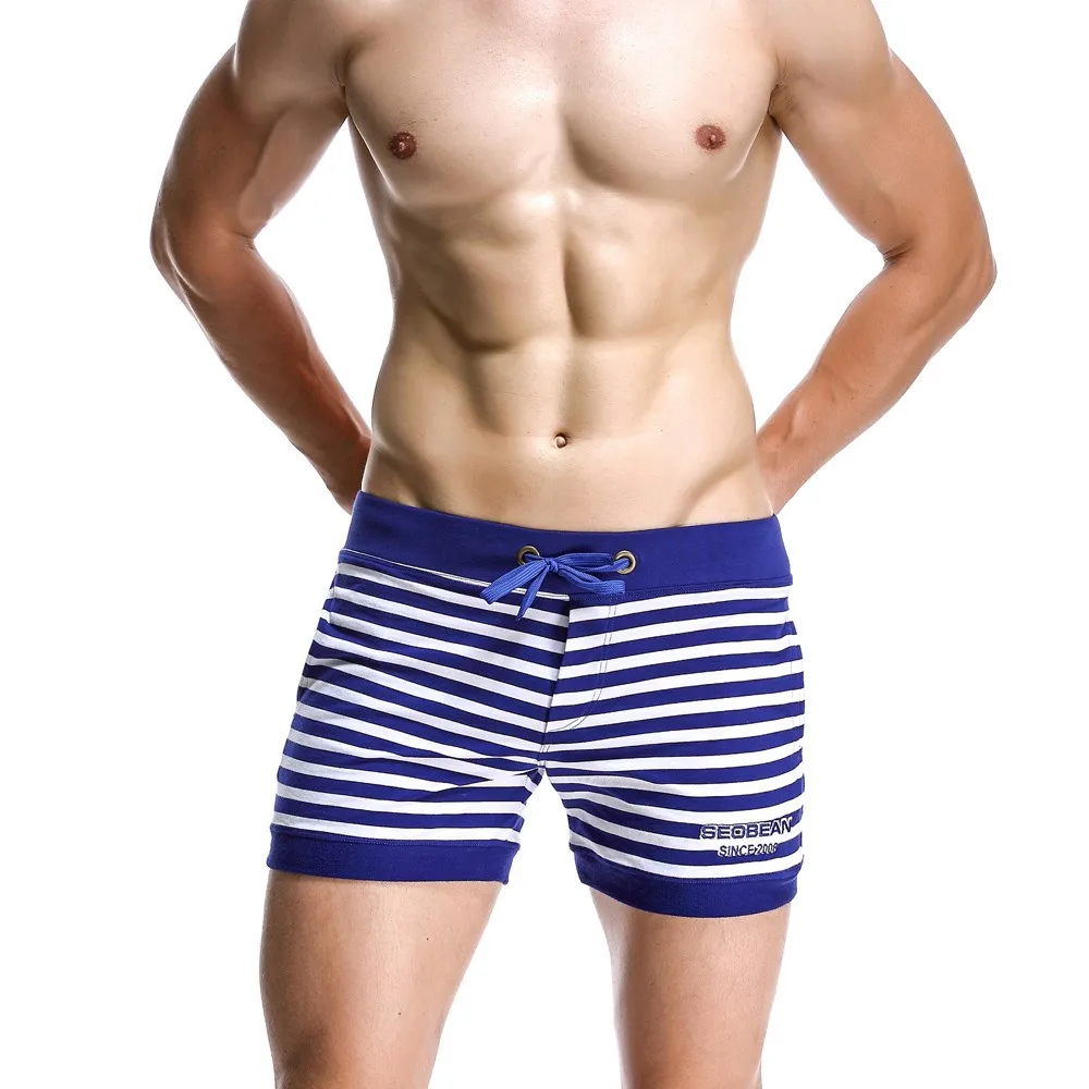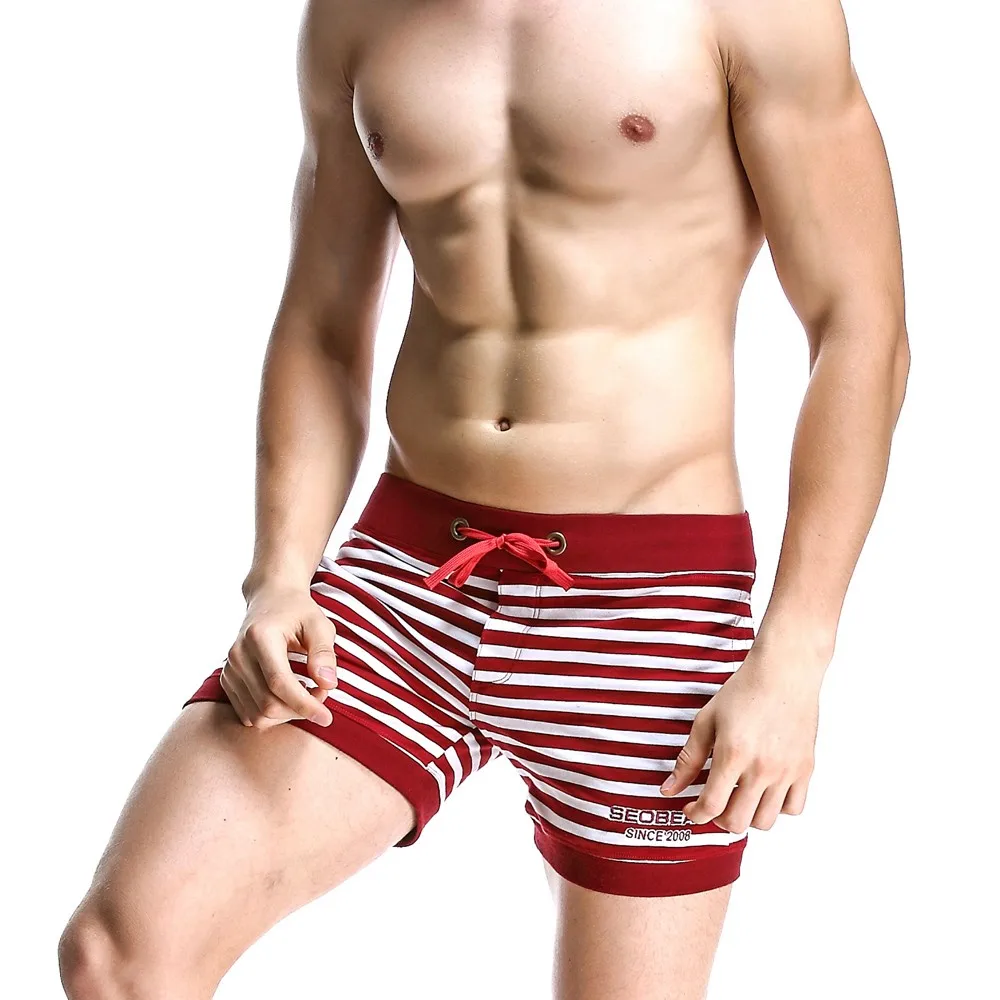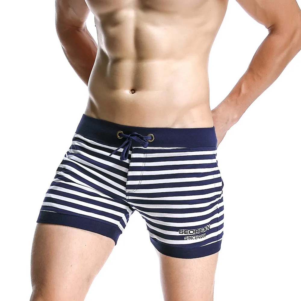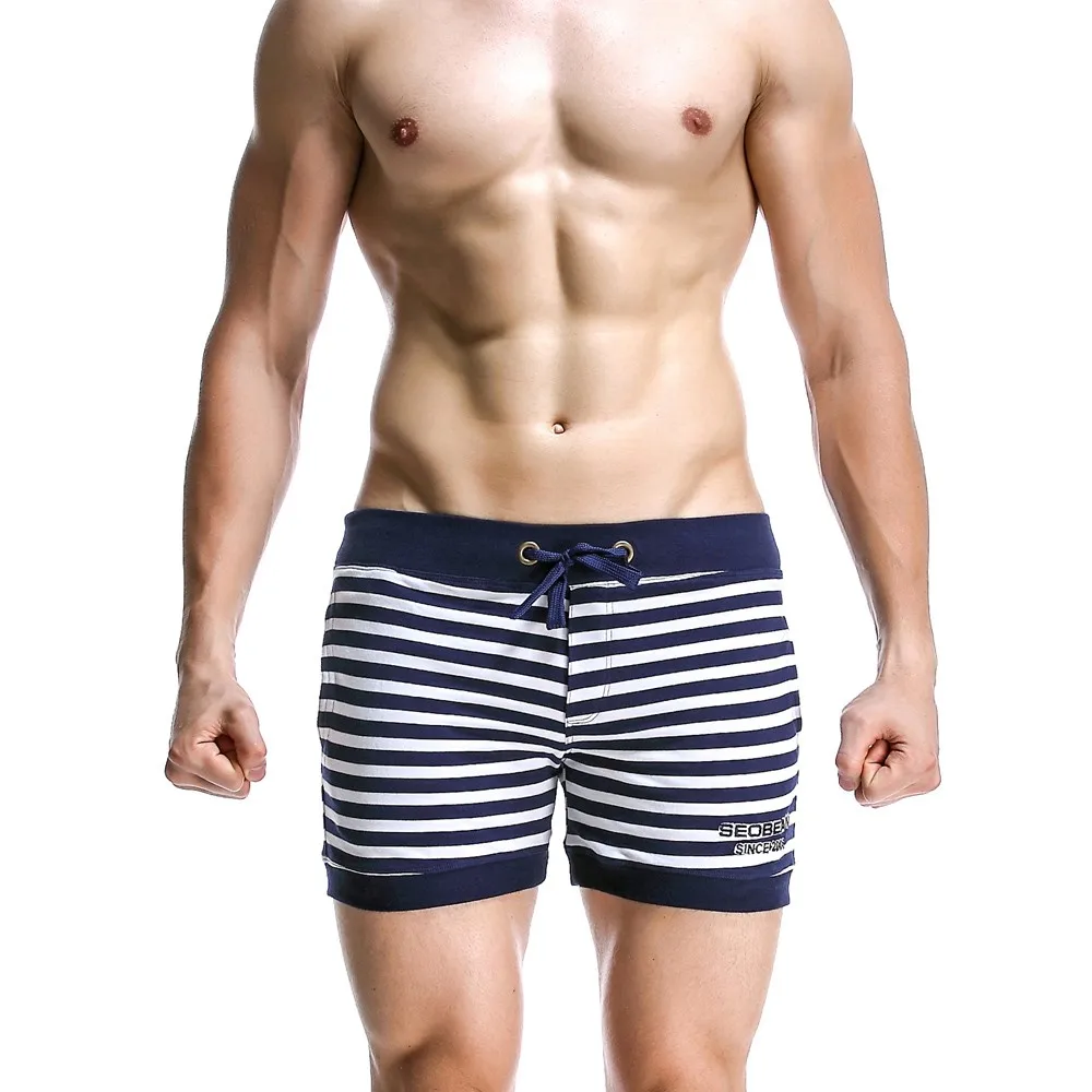Abeillevie New Fashion Cotton Men’s Jogger Shorts Leisure Short With Pocket Casual Striped Elastic Waist Men Lounge Shorts PF072