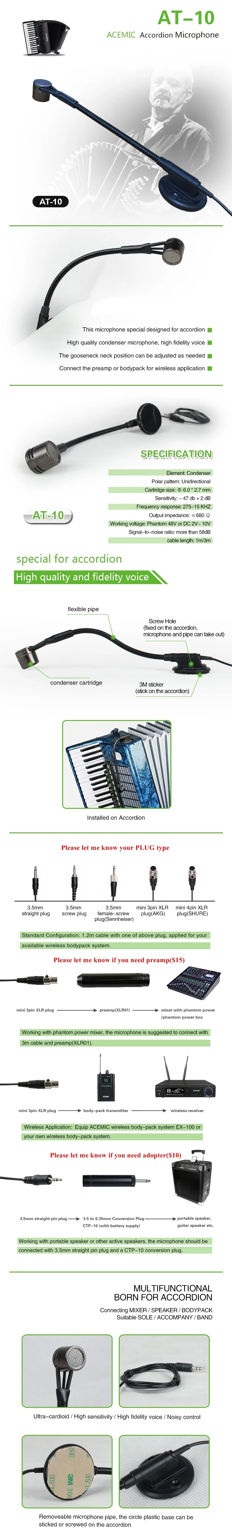 ACEMIC Professional accordion microphone AT-10 , musical instrument microphone, 3m cable