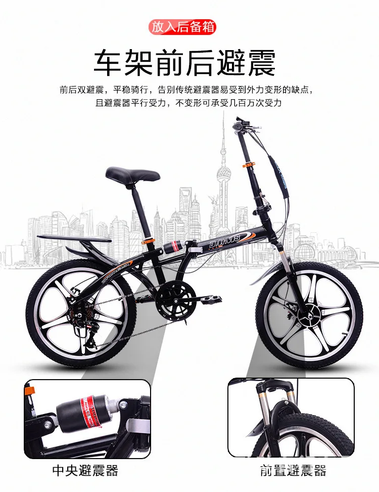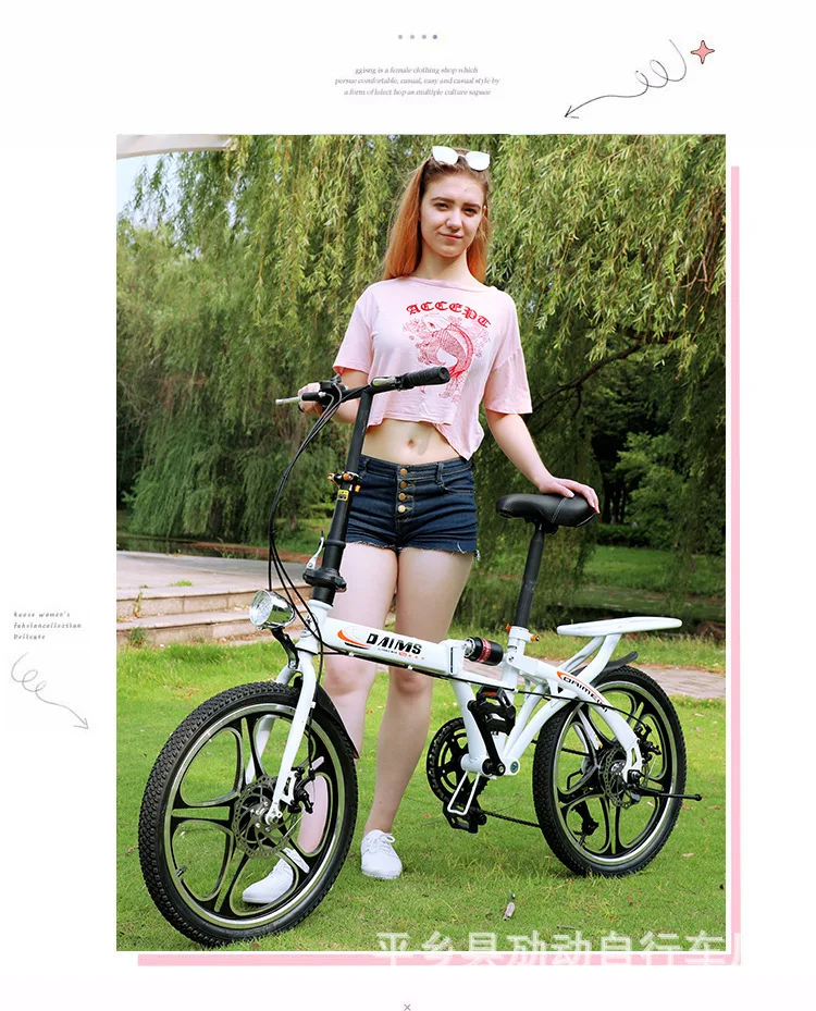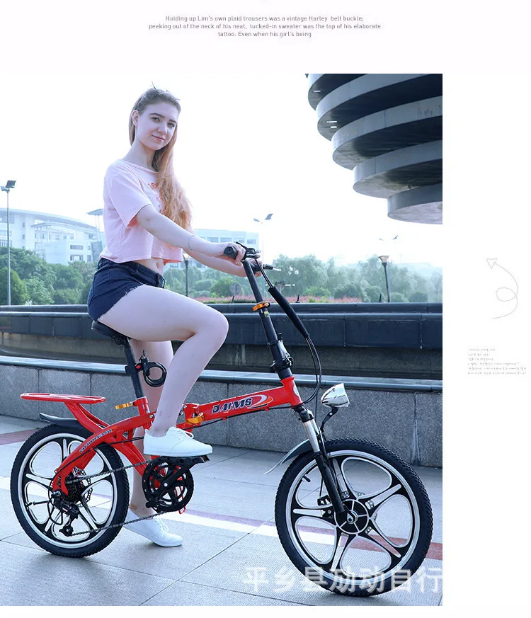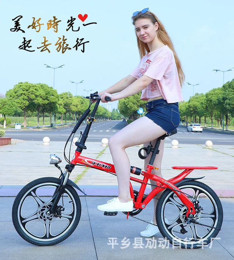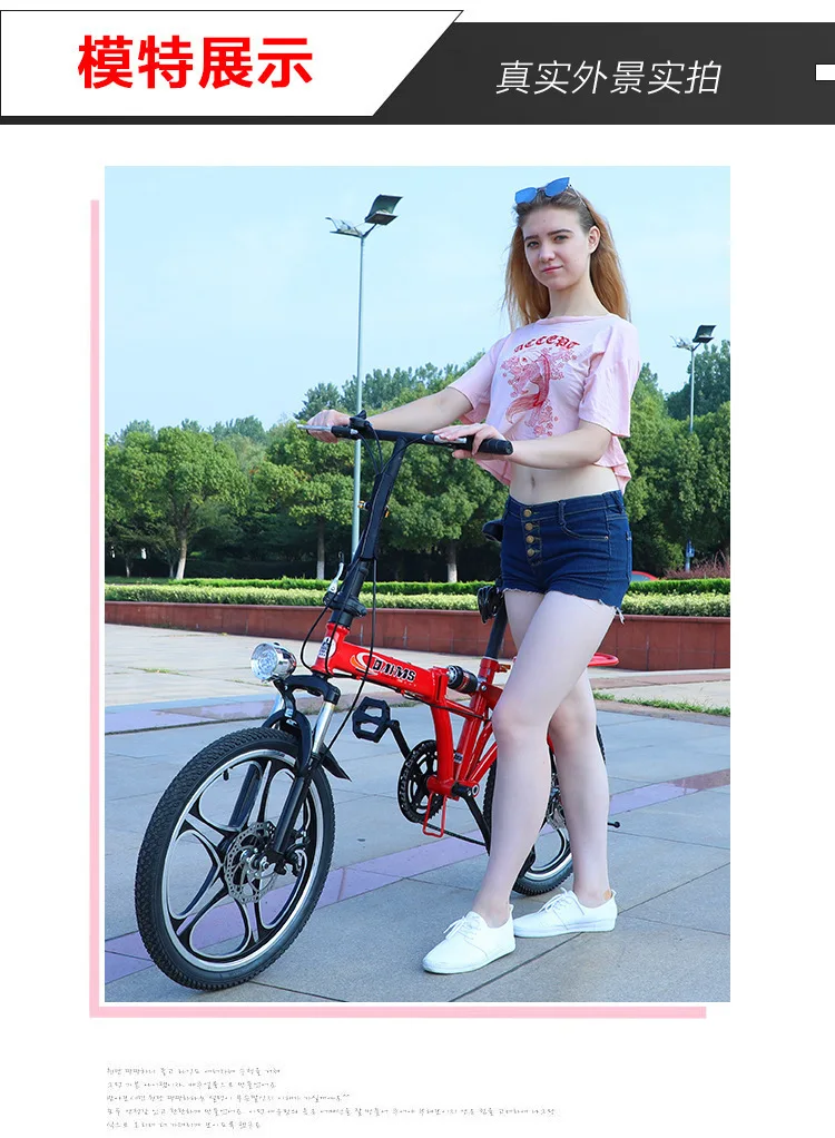 AD0300081 14/16 Inch Male Women’s Fold Variable Speed Shock Disc Brake Middle School Student Bicycle