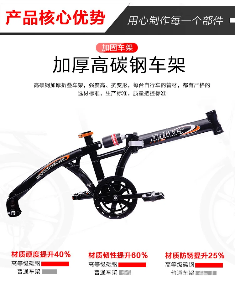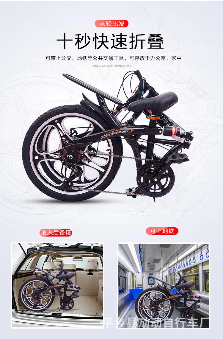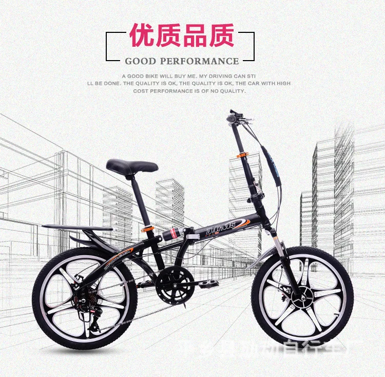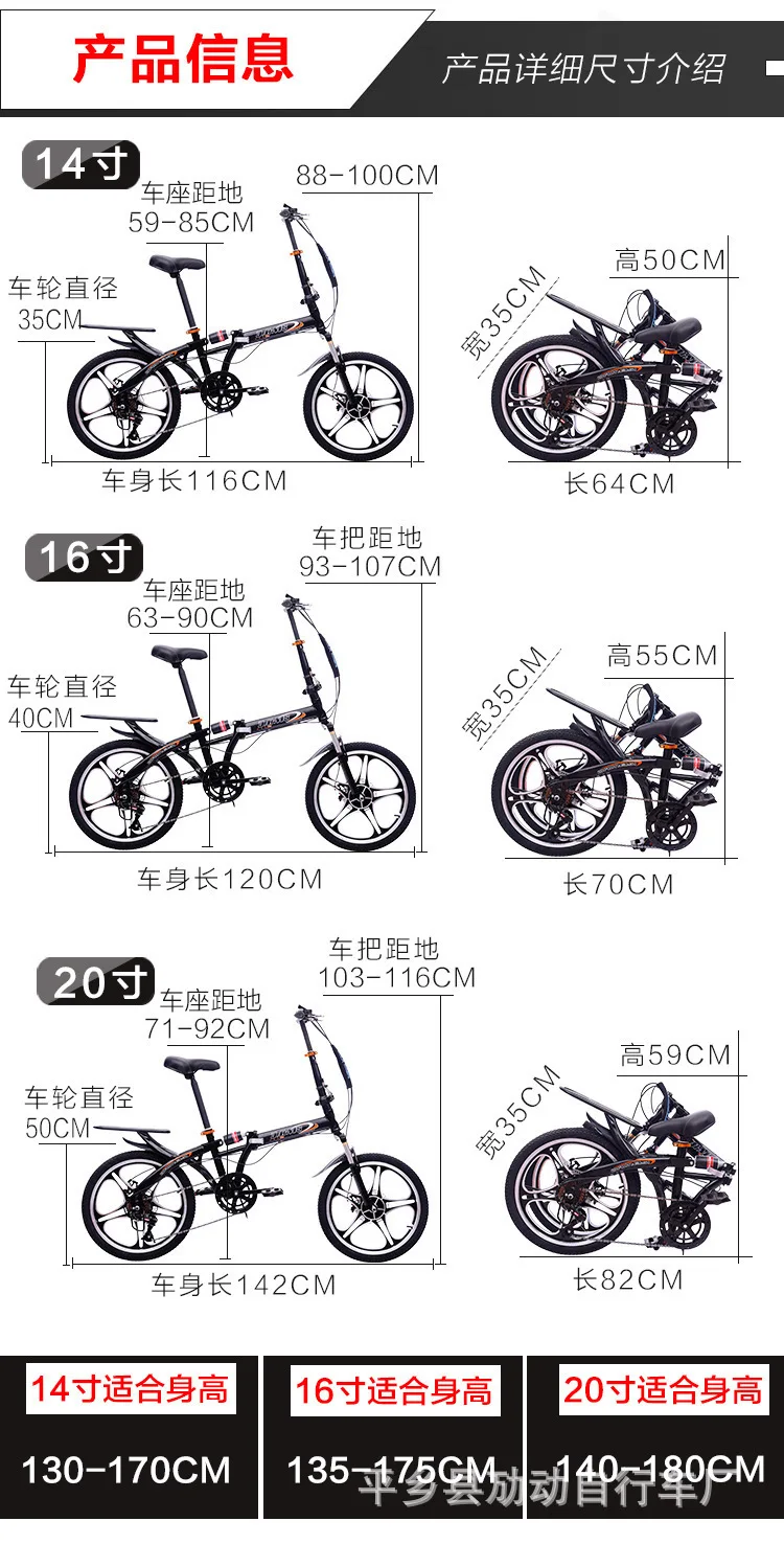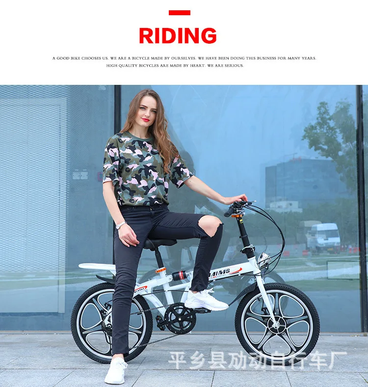 AD0300081 14/16 Inch Male Women’s Fold Variable Speed Shock Disc Brake Middle School Student Bicycle