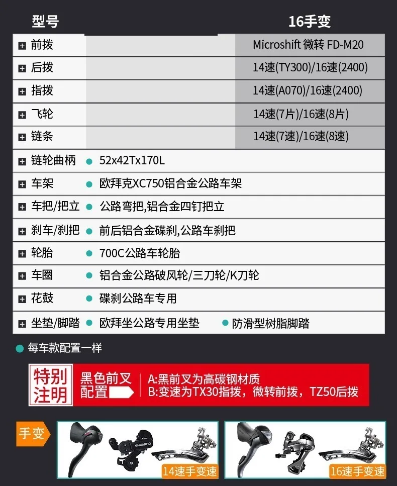 AD0300085 Aluminium Alloy 16 Speed Hand Change 700C Cross-country Highway Race Vehicle mountain bike