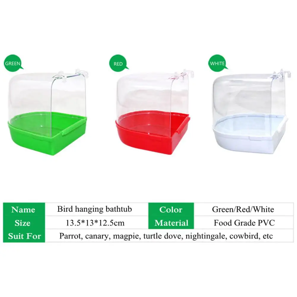 Adeeing Parrot Bird Bathtub with Hooks Cage Accessory Bird Bath Shower Box Random Color